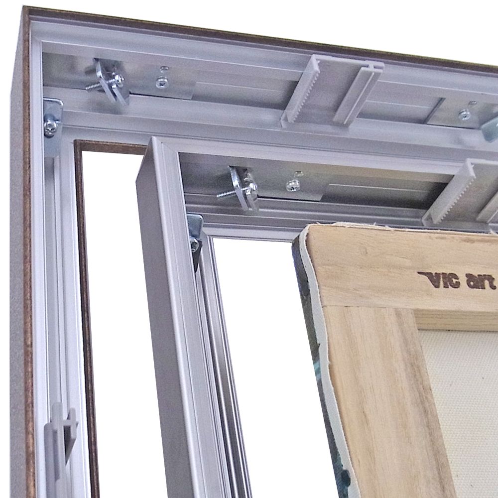 仮縁は枠だけの組立式。表面カバーなどは付属しない、厚みのあるキャンバスやパネル専用の額縁です。それ自体で平面性を保てない、紙などの薄い品物には使えません。 ご指定の寸法での特注製作も承っております。こちらから寸法入力をお試しください。