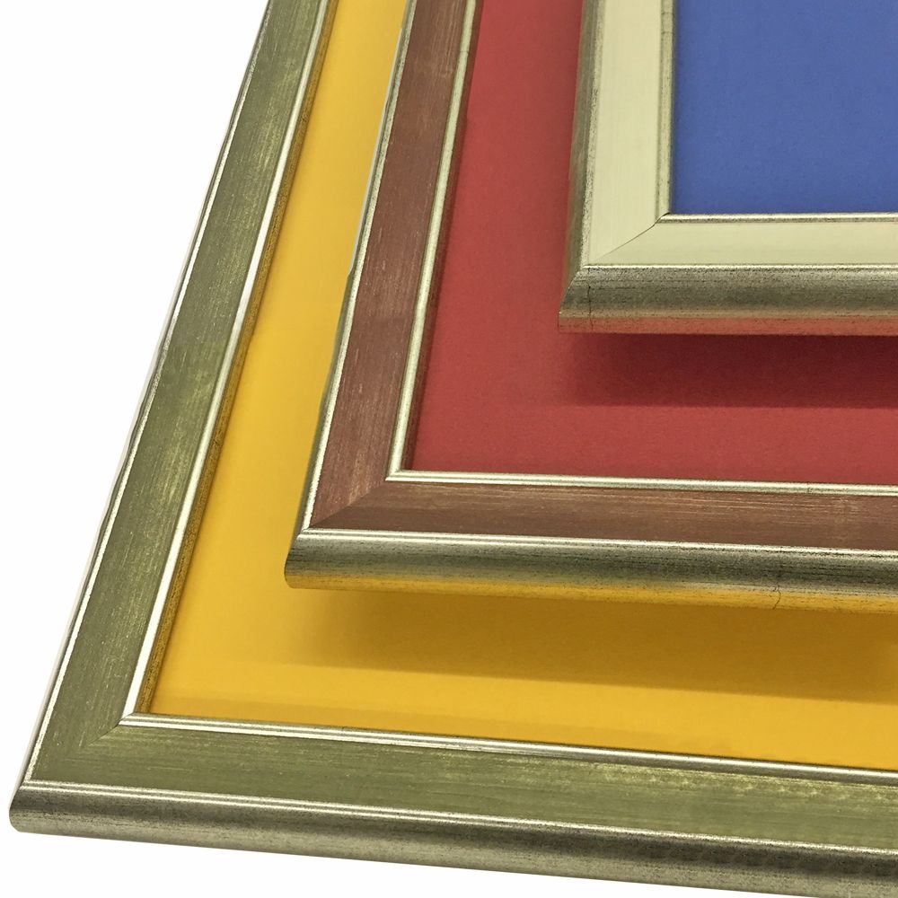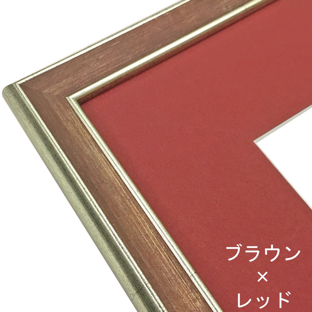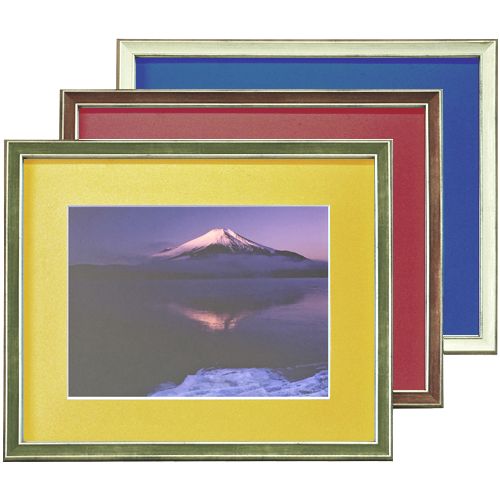 この額縁は窓抜きされたマットが付属します。飾る品物にマットを被せてセットしましょう。下部表のマット窓抜寸法をご確認ください。 窓抜寸法の変更やマット色の変更をご希望の場合は、こちらから一般額をお選びください。バリエーション豊富な一般額にお好みのマットを組み合わせてお求めいただけます。