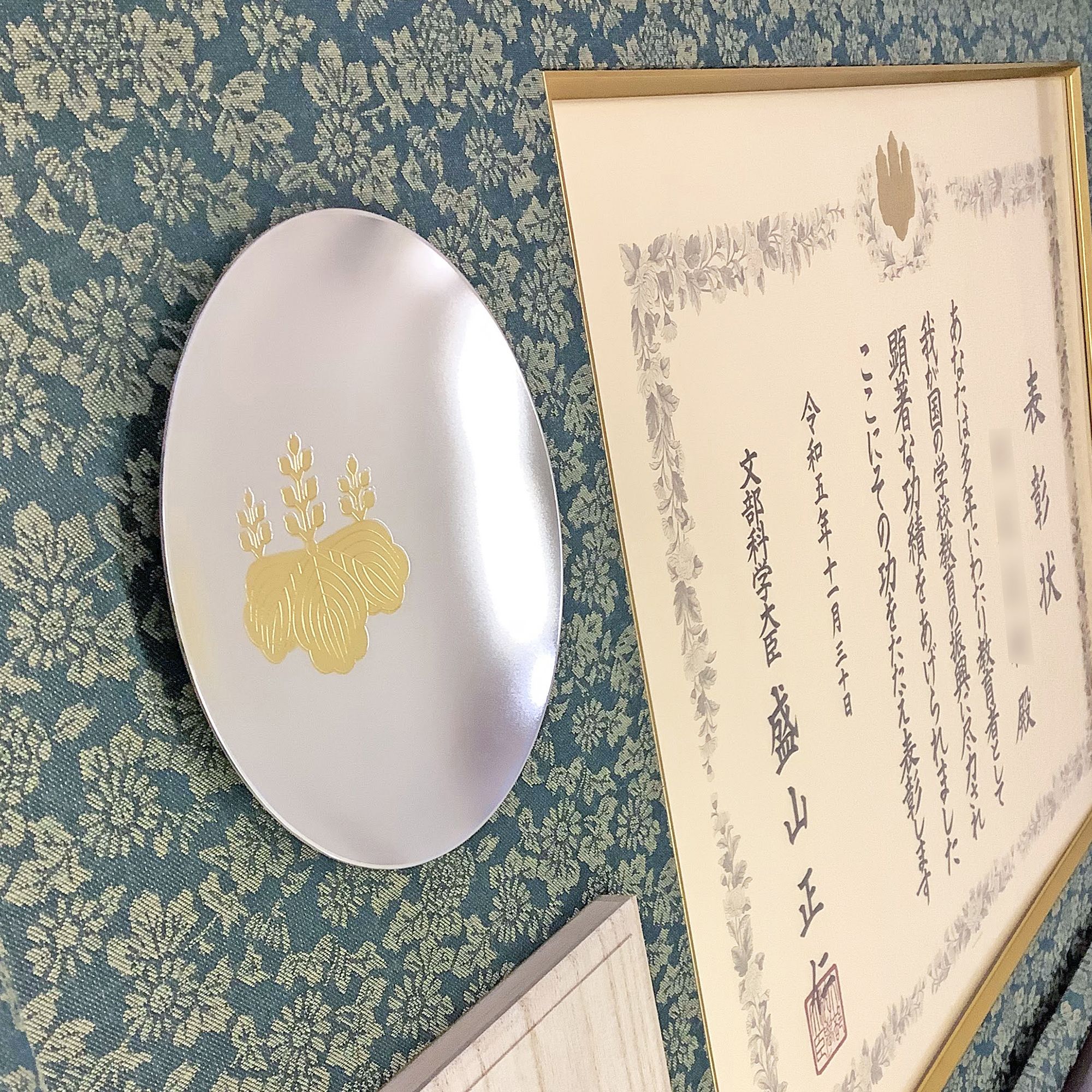 桐箱の蓋も飾れる、文部科学大臣の教育者表彰専用額です