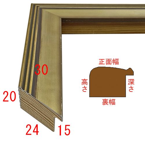 木製、オーダー製作専用フレーム。淡いゴールドが上品に彩る額縁です。フレーム外側のストライプですっきり仕上がります。