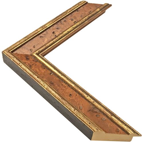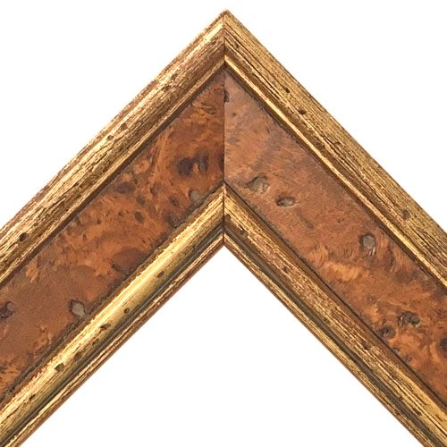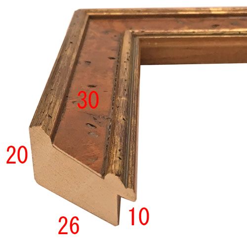 木製。オーダー製作専用のフレームです。汚しの入った金塗りと虫食いが特徴の額縁。アンティーク感溢れる仕上がりが期待できます。