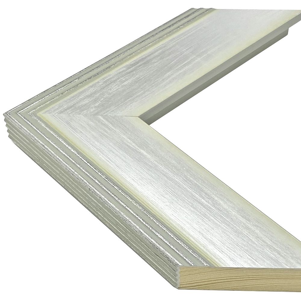 木製、オーダー製作専用フレーム。金属的な質感の淡いシルバーの額縁です。