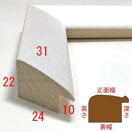 木製(パイン材)、オーダー製作専用額。しっとりとした質感のホワイトフレーム。シルク地のような光沢があります。無数に入ったラインも布目のような雰囲気。