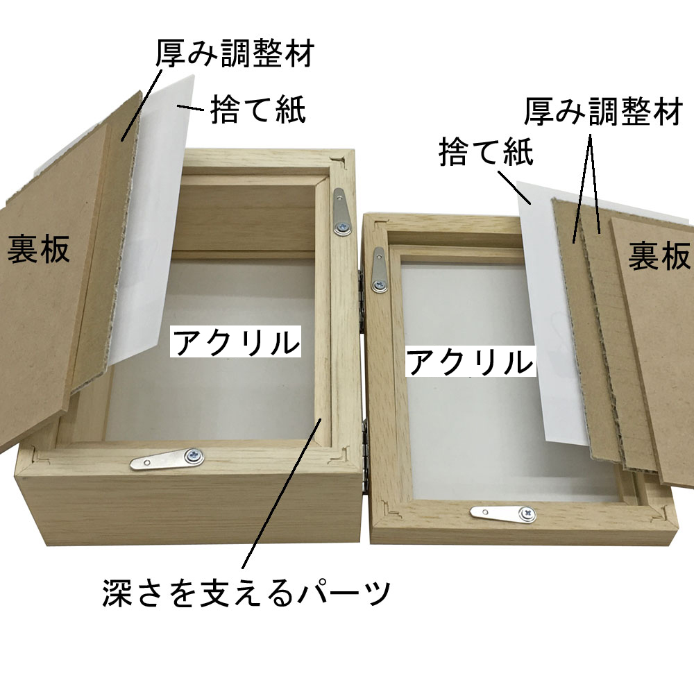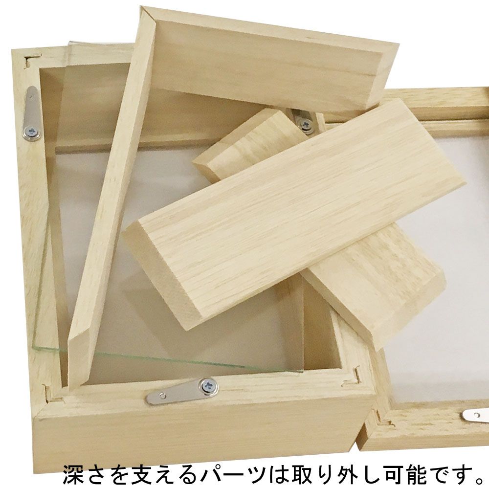 表記寸法は「額縁の内寸法」です。これは深さを支えるパーツを除いたフレーム内側の寸法です。ほぼ表面カバーや裏板寸法とお考えください。 立体額は縦横と深さに余裕を持たせて、背面に品物を配置するのが基本です。 立体額の使い方ガイドもご参照ください。