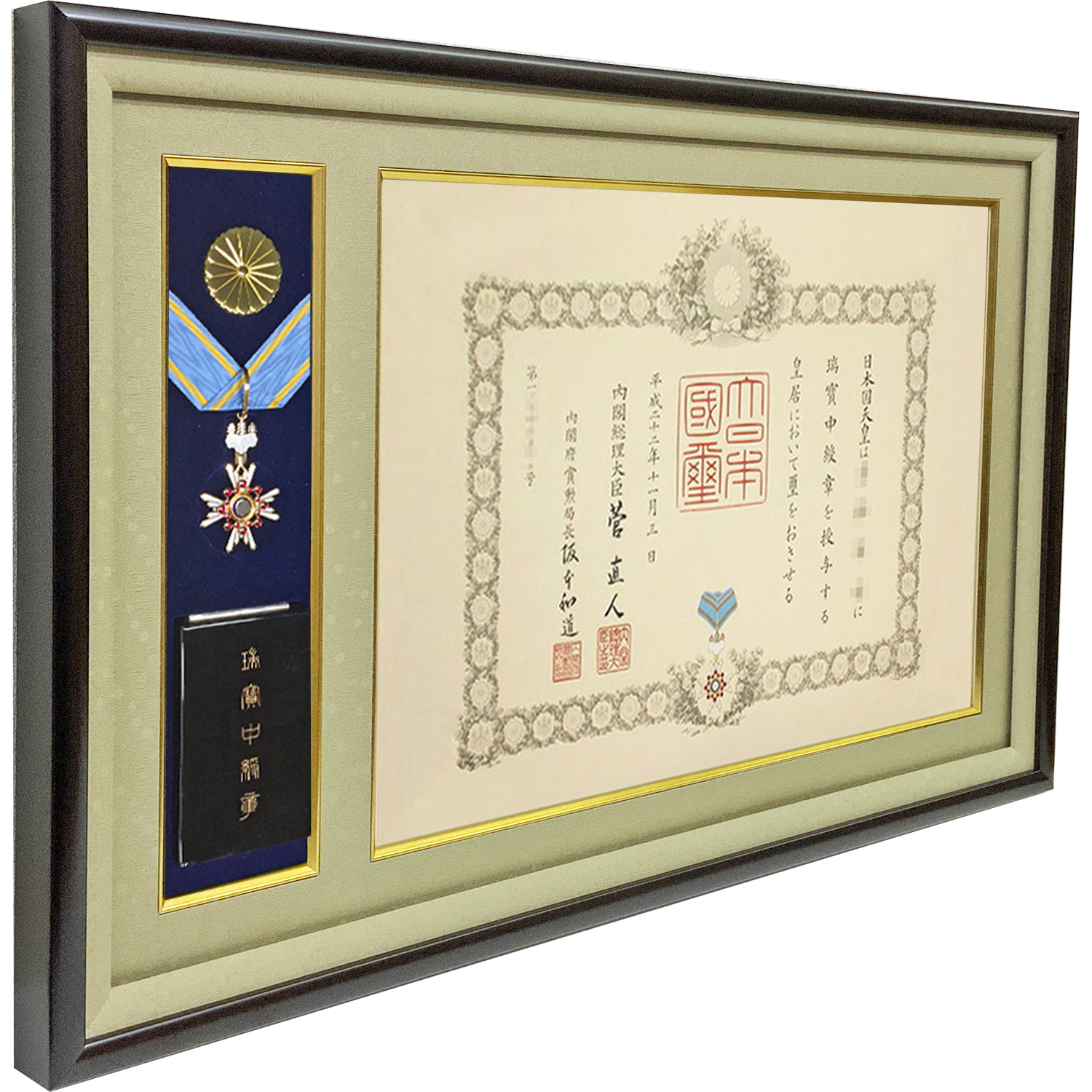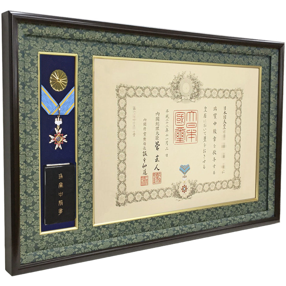 大きなリボンの中綬章専用叙勲額、ケースも飾れます