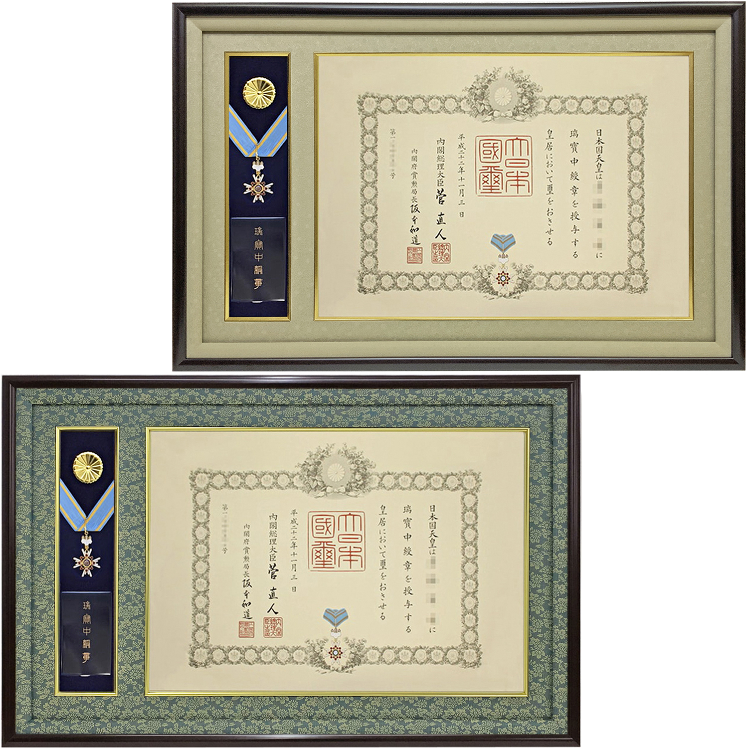 大きなリボンの中綬章専用叙勲額、ケースも飾れます
