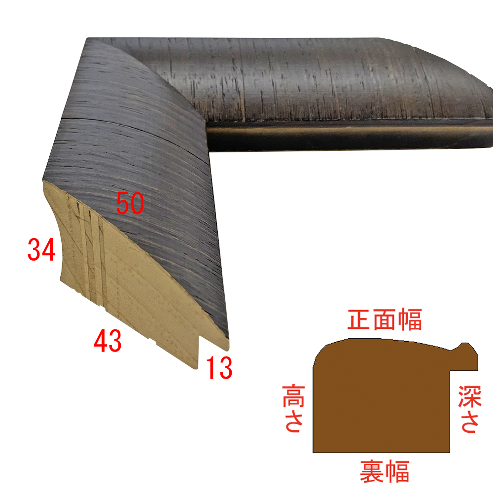 22-6821 濃い目の墨色を木肌風のフレームにのせた額縁