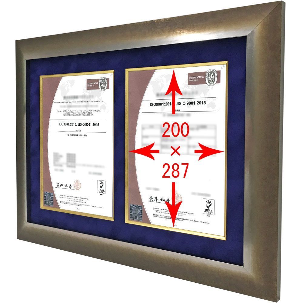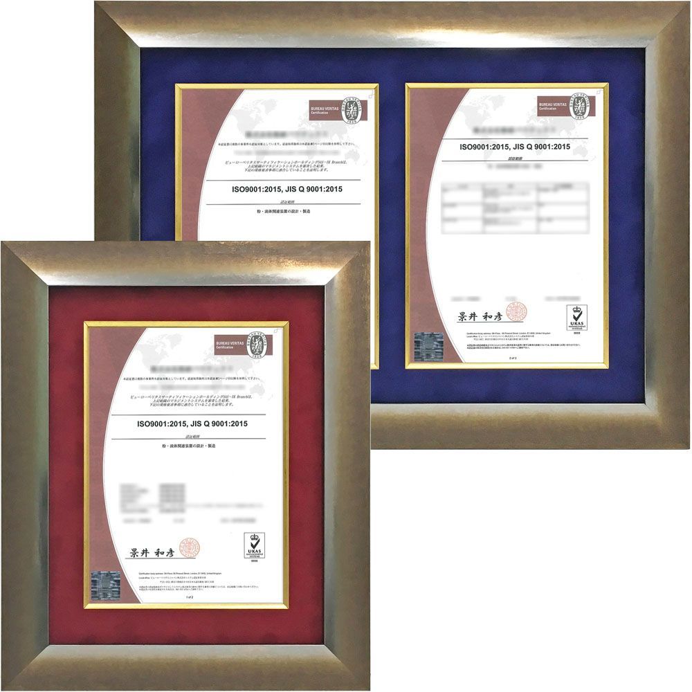 イタリア製の高級フレームでお作りする、ISO認定証の専用額