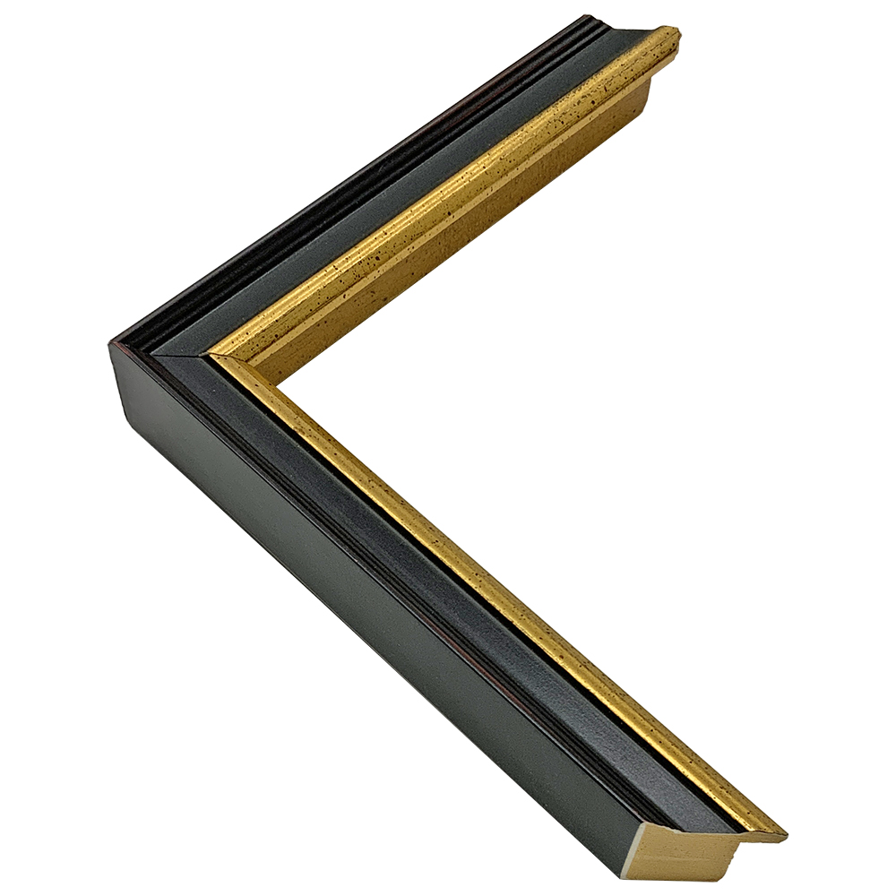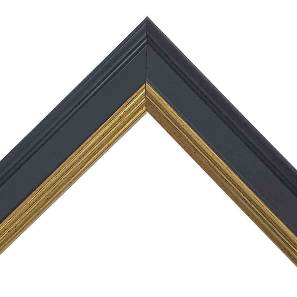 木製、オーダー製作専用フレーム。黒と金がメリハリのある額装に仕上げる。細身ながらも存在感を放つ額縁です。