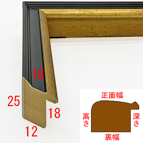 木製、オーダー製作専用フレーム。黒と金がメリハリのある額装に仕上げる。細身ながらも存在感を放つ額縁です。