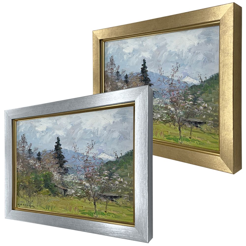 ゴールドのアクセントが輝く、コンパクトなキャンバス額