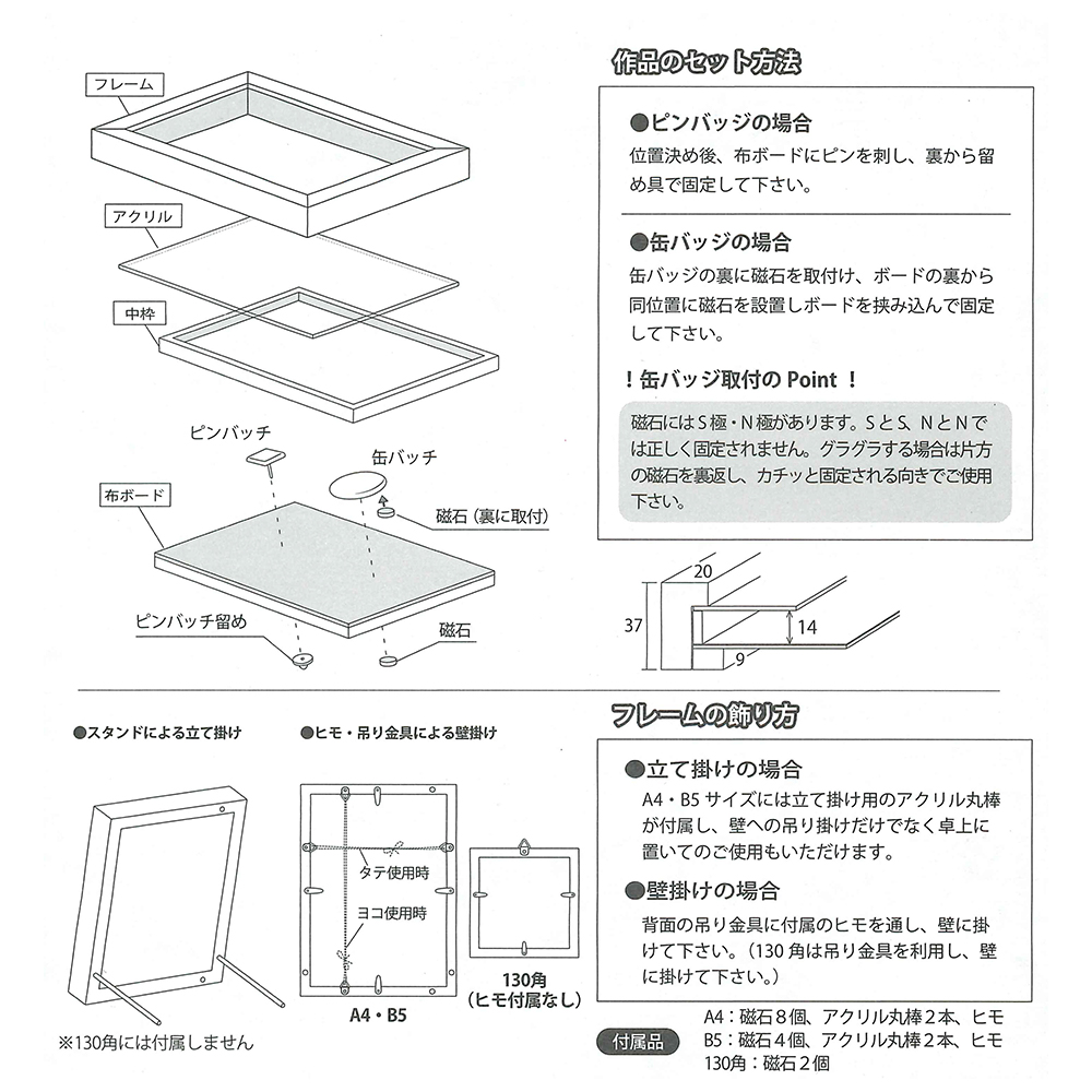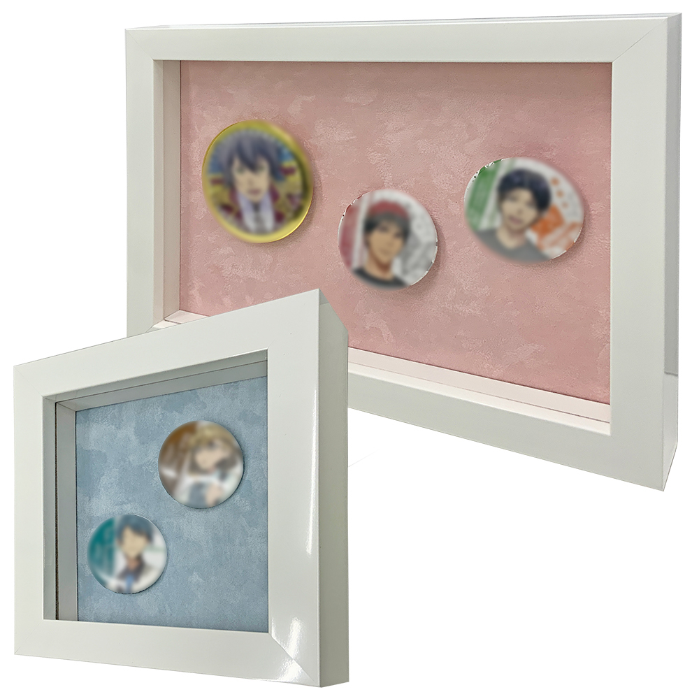 缶バッジやピンズを飾れる専用額。