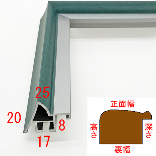 内側のシルバー枠とグリーンの対比が美しいフレーム