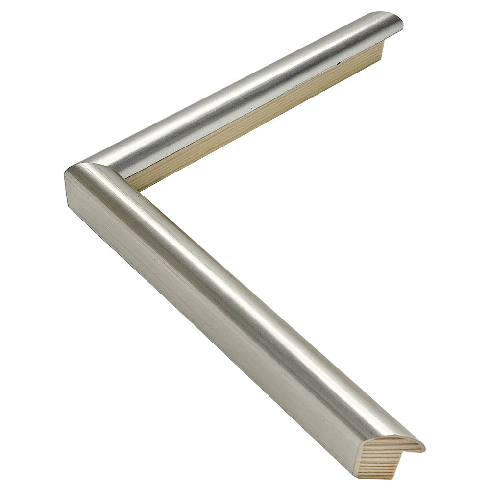 パイン材、オーダー製作専用フレーム。トップの円みが優しい陰影を作るかまぼこ型。落ち着きのある銀箔の色合い。やや光沢を控えめにした上品な装いです。