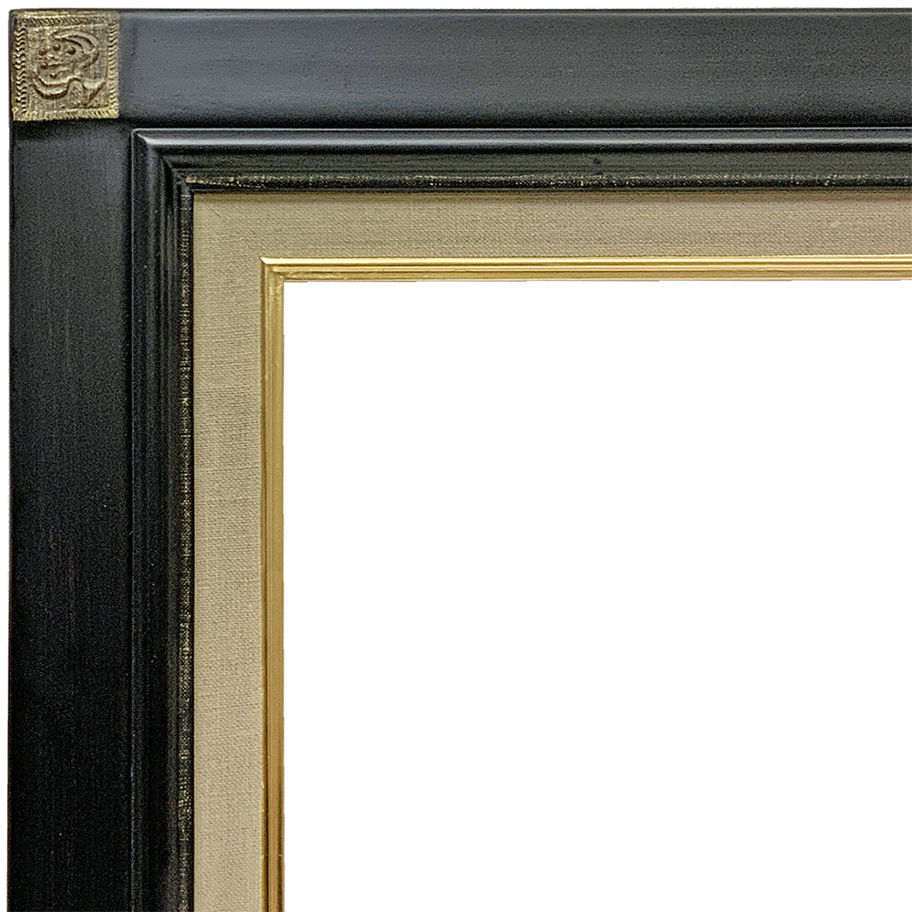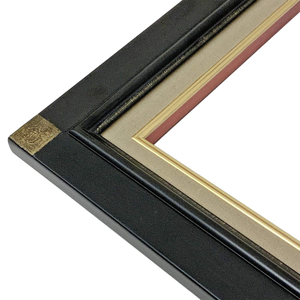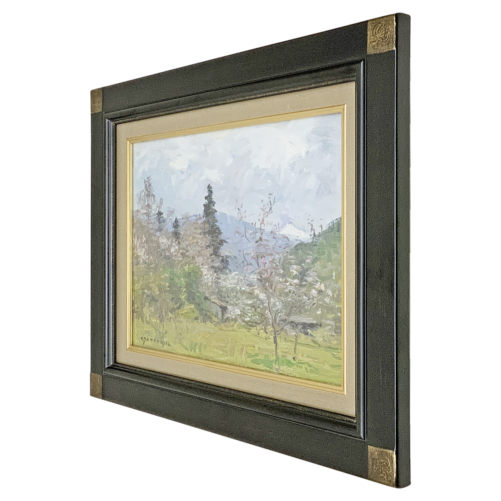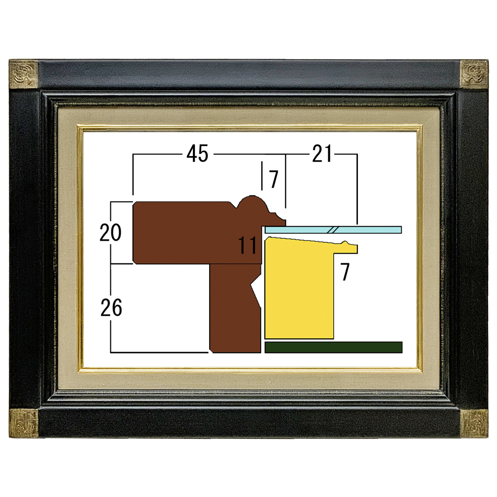 シンプルな形状に鉄黒の深みのある色合いをのせた油絵額