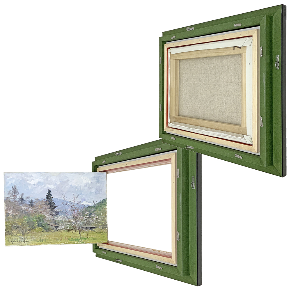 油絵額は絵画規格サイズで作られています。飾る作品と同サイズの額縁を選びましょう。はめ込み部分にはゆとりがあるので、1-2mmの誤差は問題ありません。セット方法については、こちらの動画でご紹介しております。 構造上、収納部のサイズ調整は困難です。規格外の作品には、こちらから特注サイズでご注文ください。