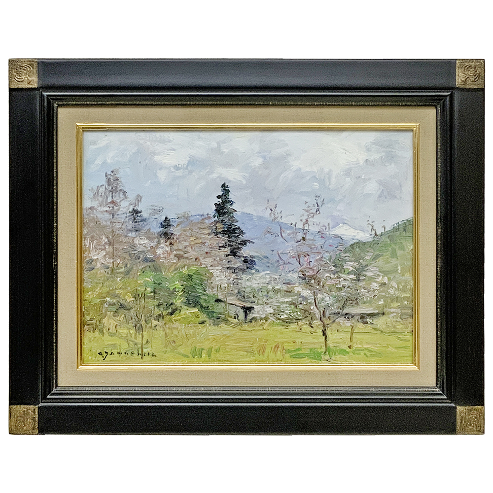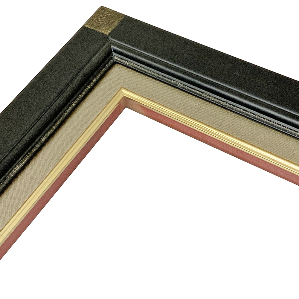 シンプルな形状に鉄黒の深みのある色合いをのせた油絵額