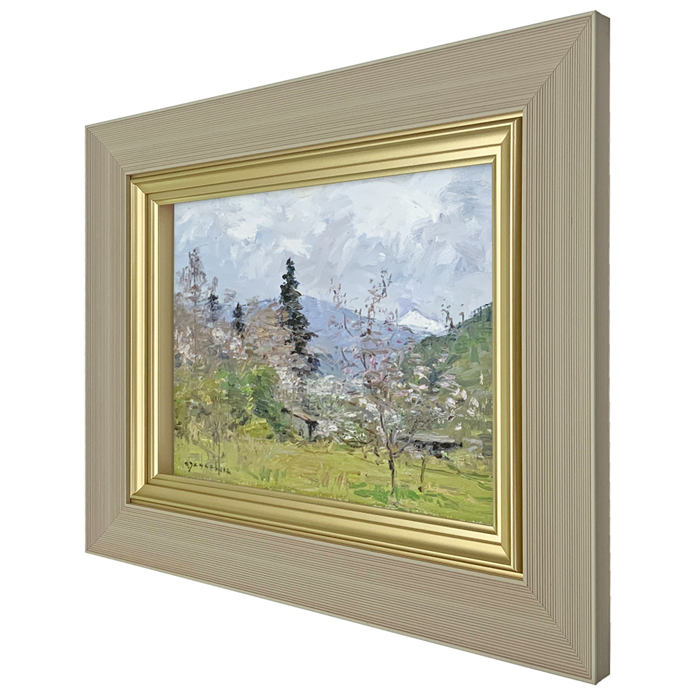 浮造りの和モダンなデザインですっきりと飾る油絵額