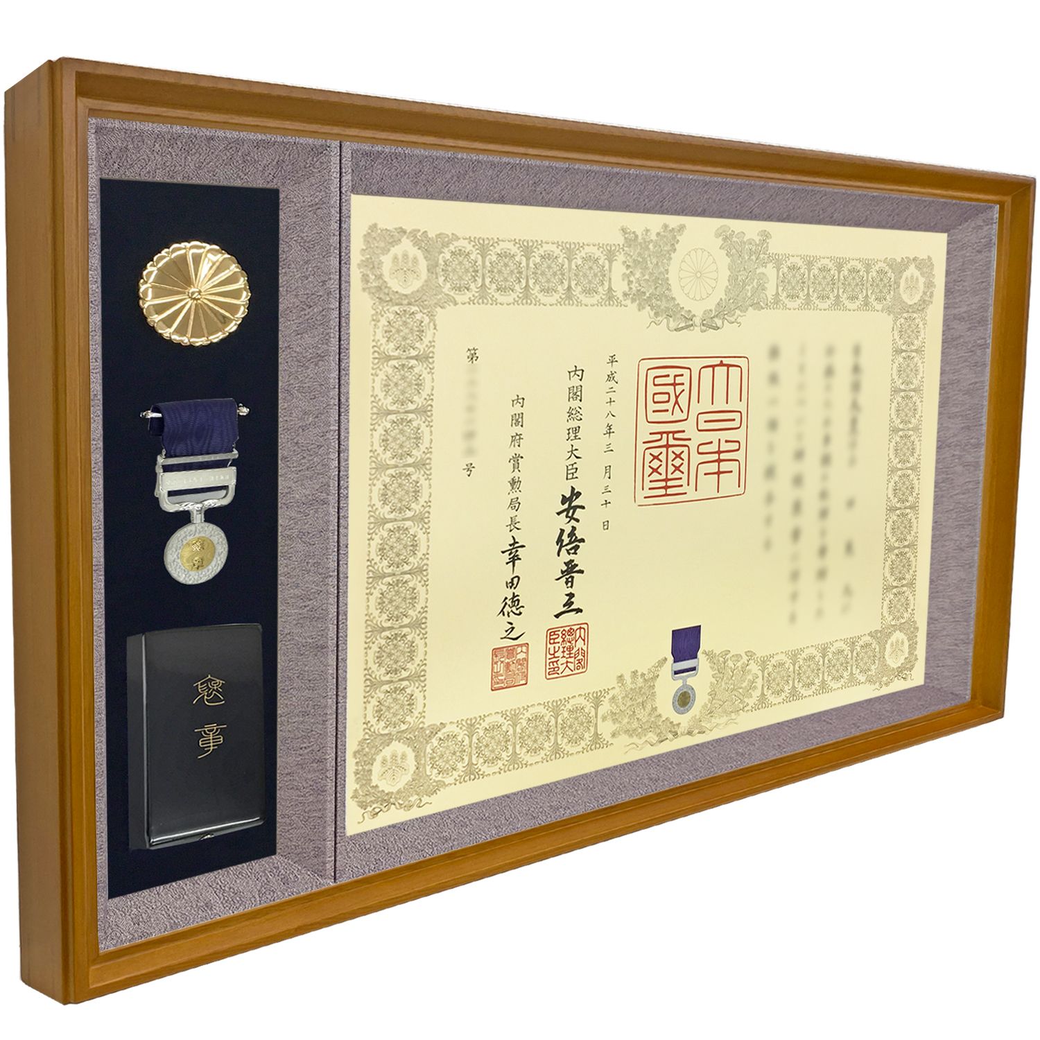 明るい色合いの、現代住宅を意識したシンプル褒章額