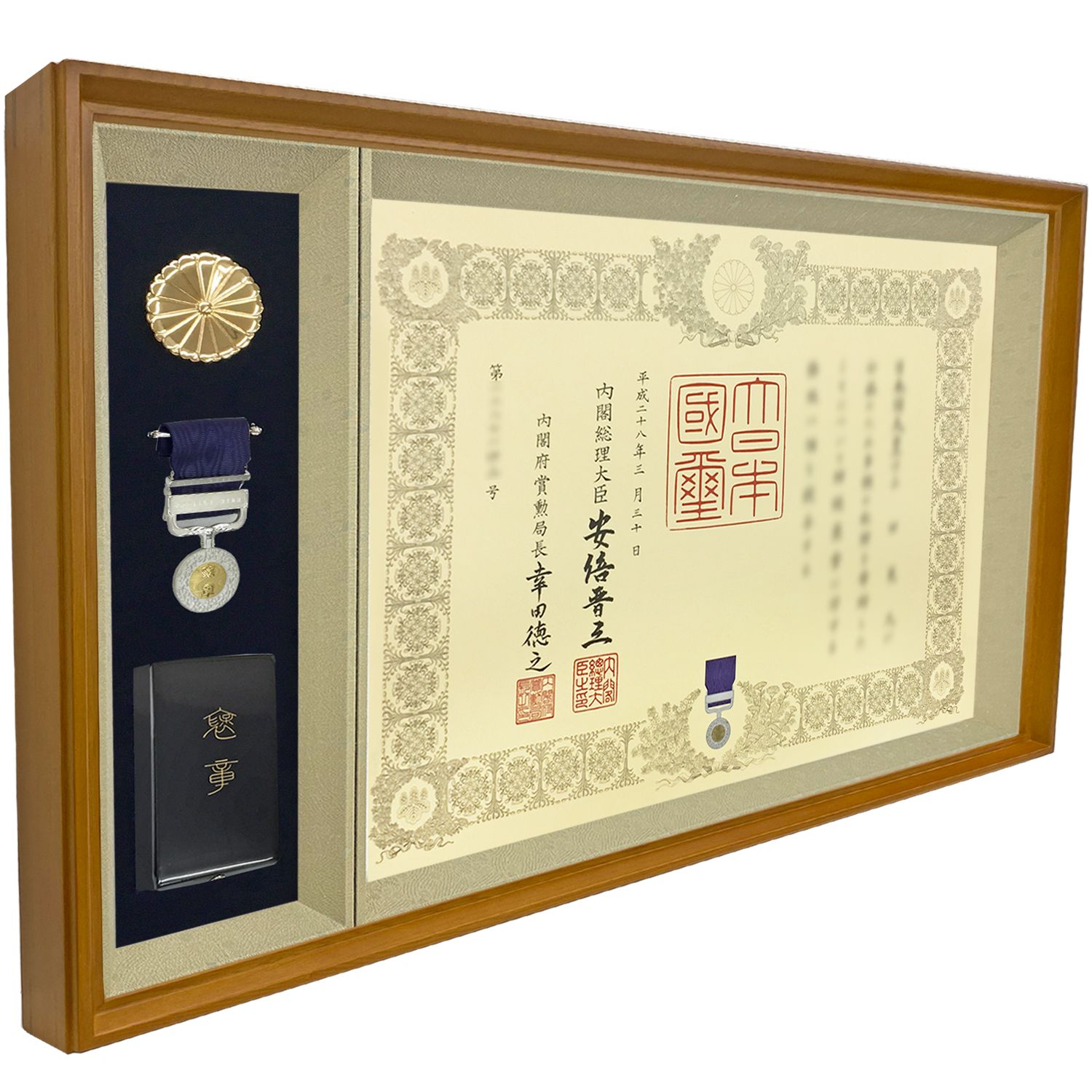 明るい色合いの、現代住宅を意識したシンプル褒章額