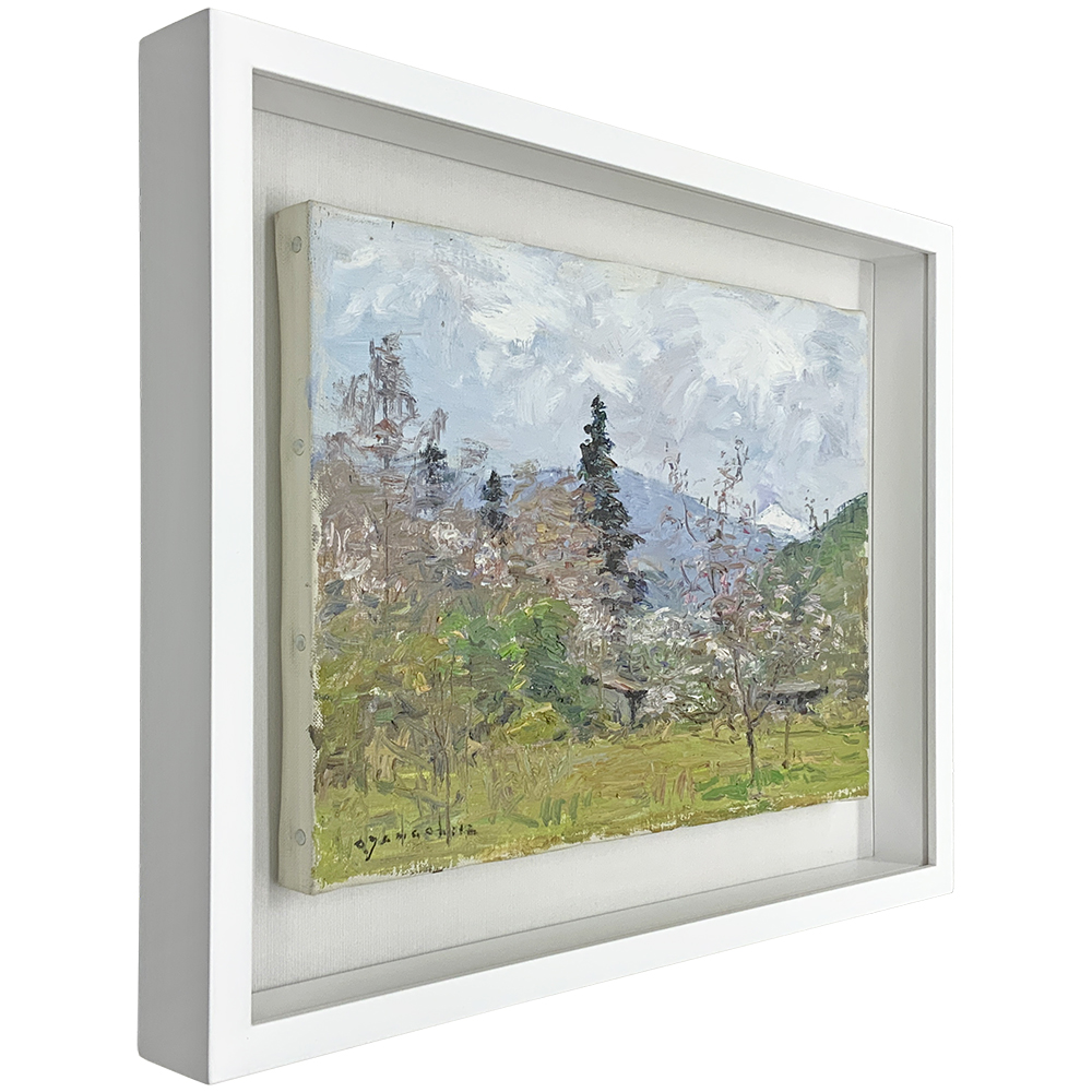 フレーム幅15mmの細身で、作品の周囲に余白が生まれる浮かし額。