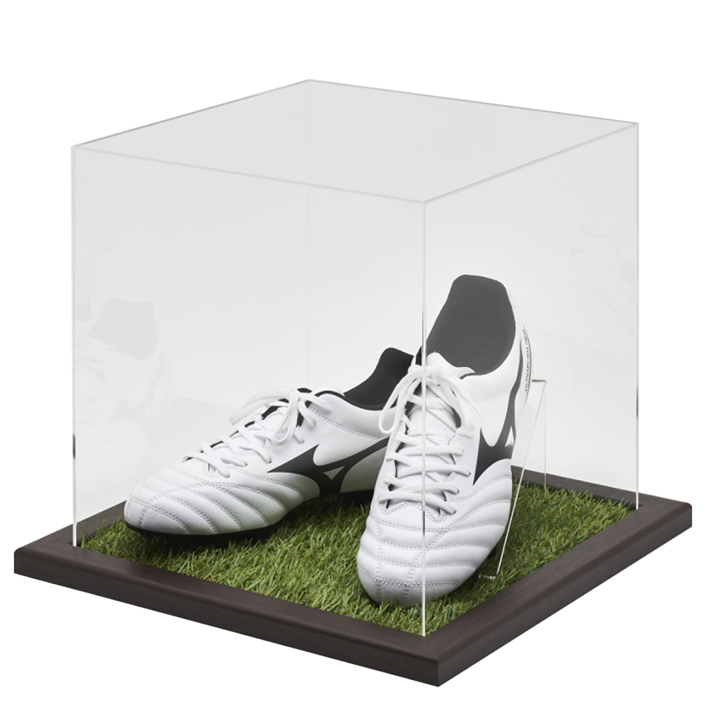 国際試合競技会場と同じ人工芝を採用した、臨場感たっぷりのアクリルケース。