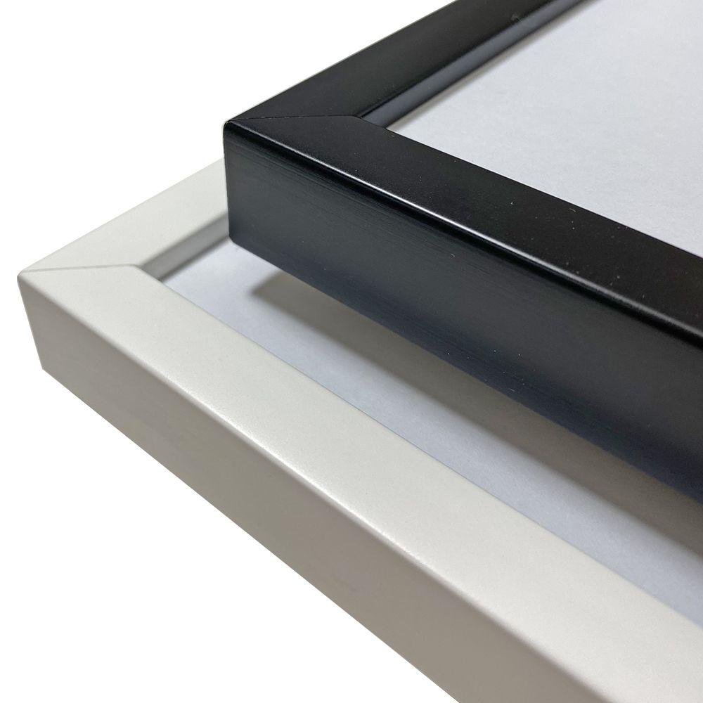 細身でシンプルな平角、白と黒のベーシックな額縁です。