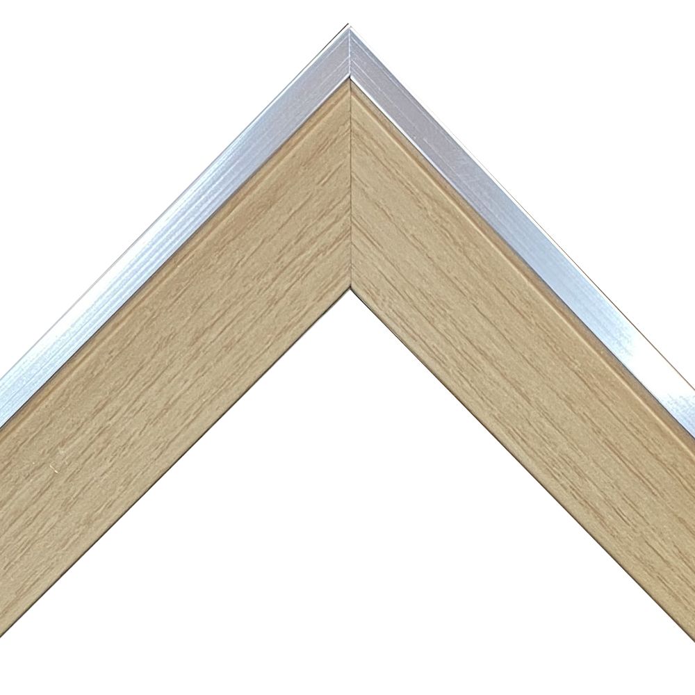 規格品もあるモントレを特注サイズでご用意。ツートンカラーのモダンなフレームです。ラッピング加工を施した木目調と、アルミ製の素材感の2色が楽しめる額縁。木材に比べ、均一で安定した品質、色合いを誇ります。