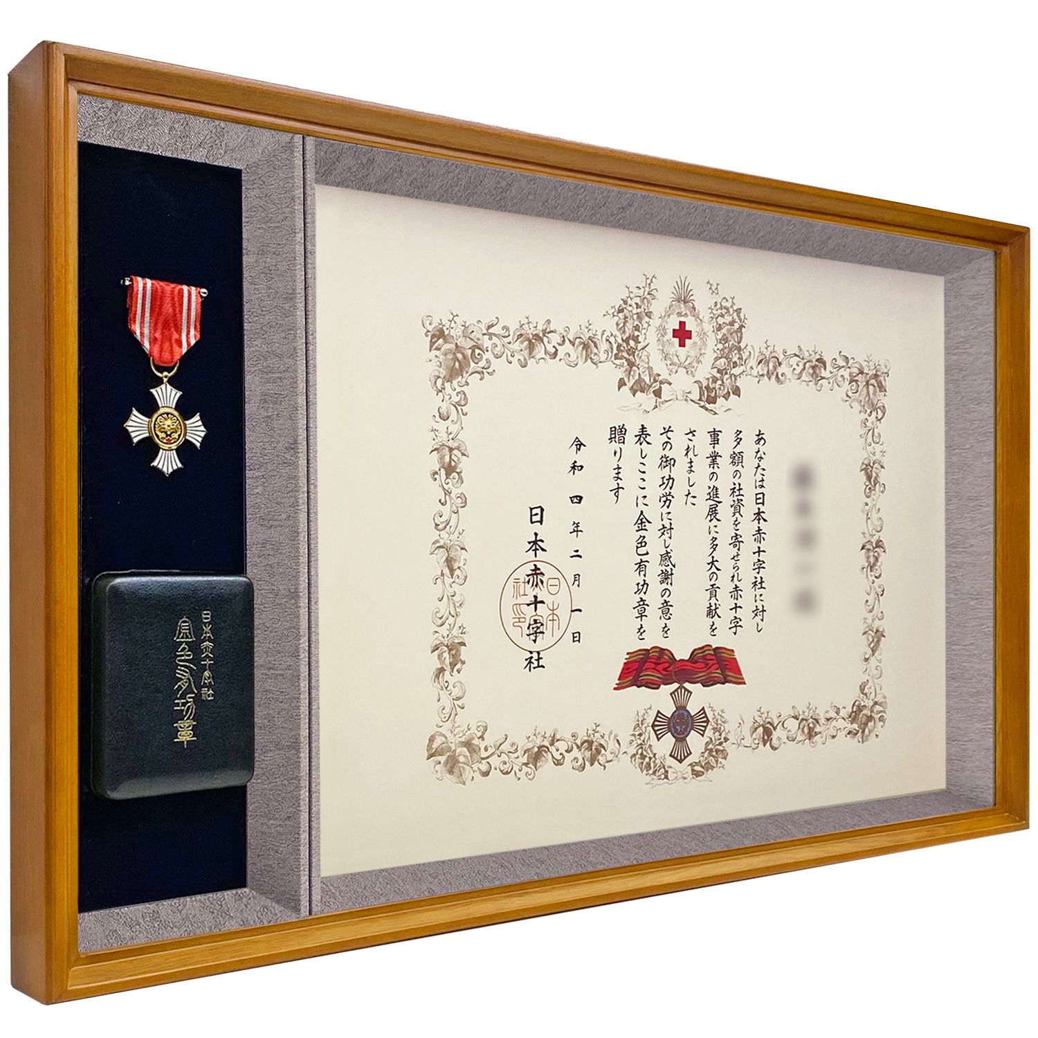 日本赤十字社の有功章を飾れる、和モダンな表彰額