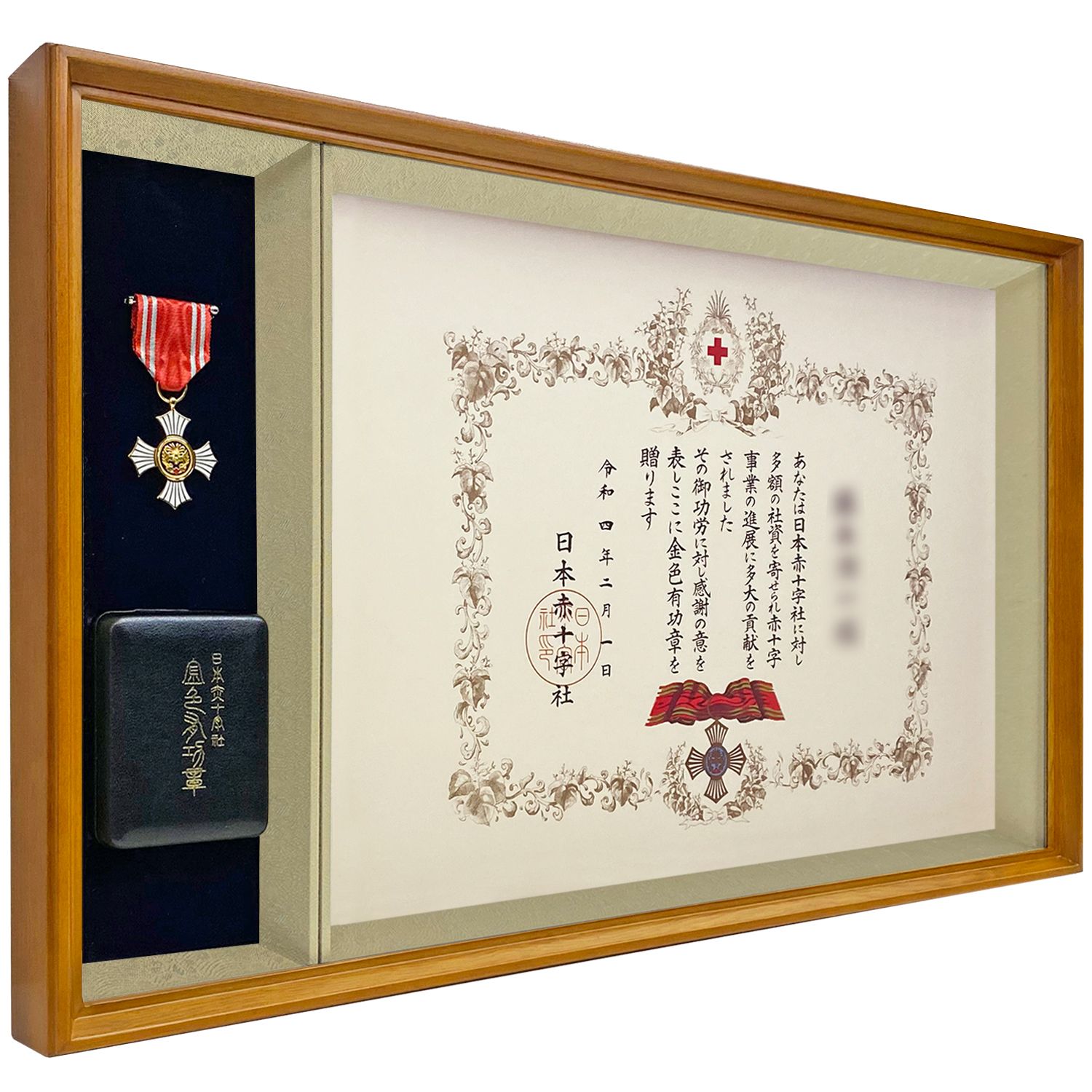 日本赤十字社の有功章を飾れる、和モダンな表彰額