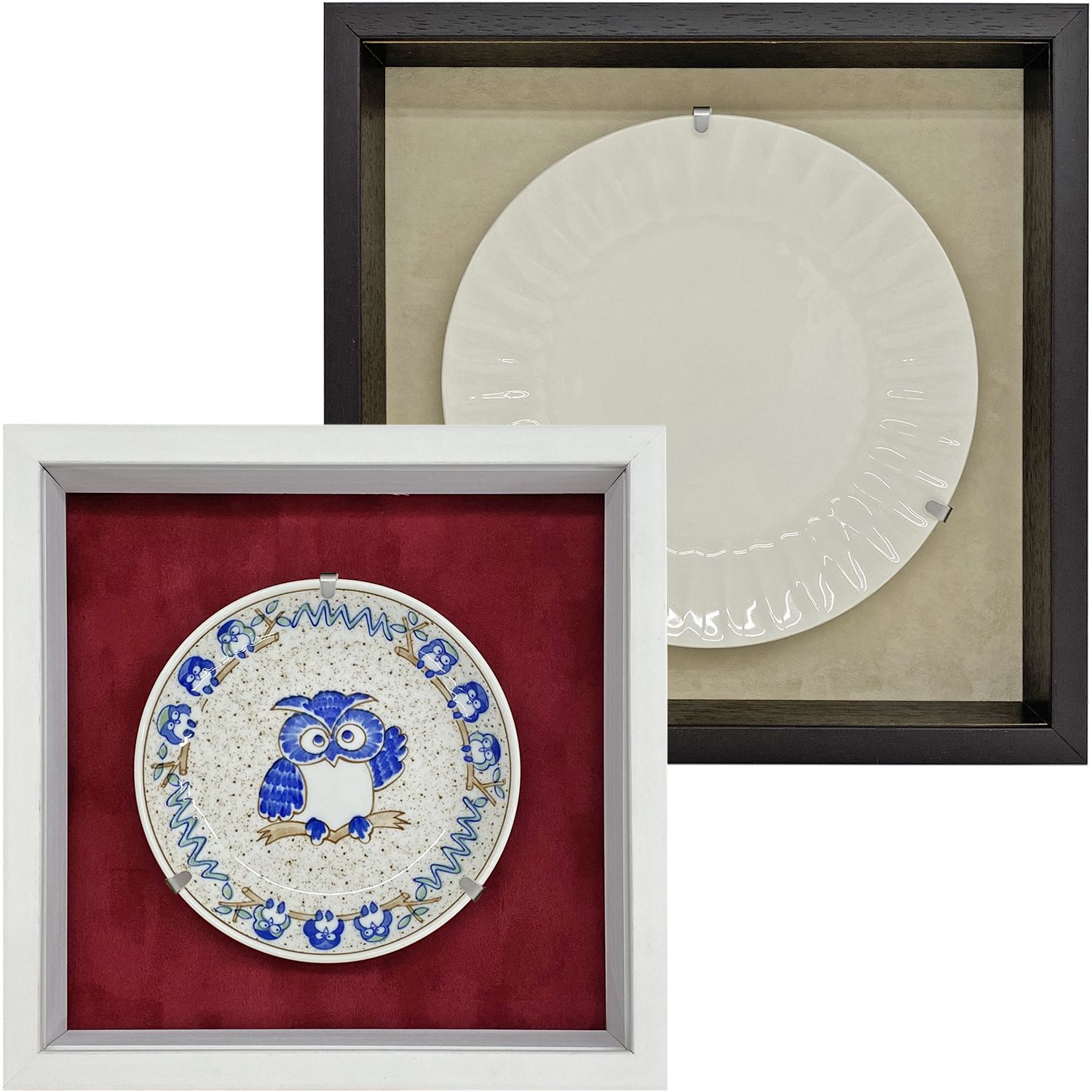 お皿専用のホルダーが付属する、シンプルなボックス額です