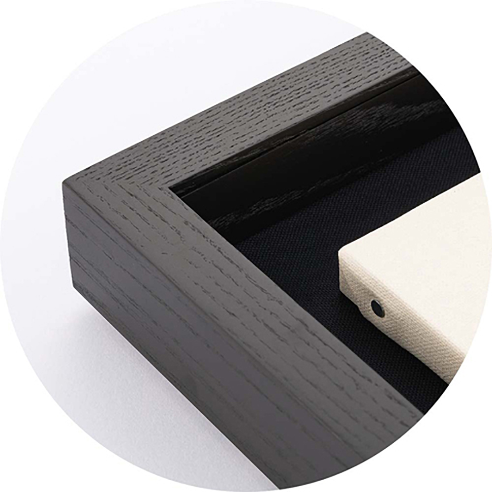 安定感のあるフレーム幅、木目を活かしたキャンバス浮かし額