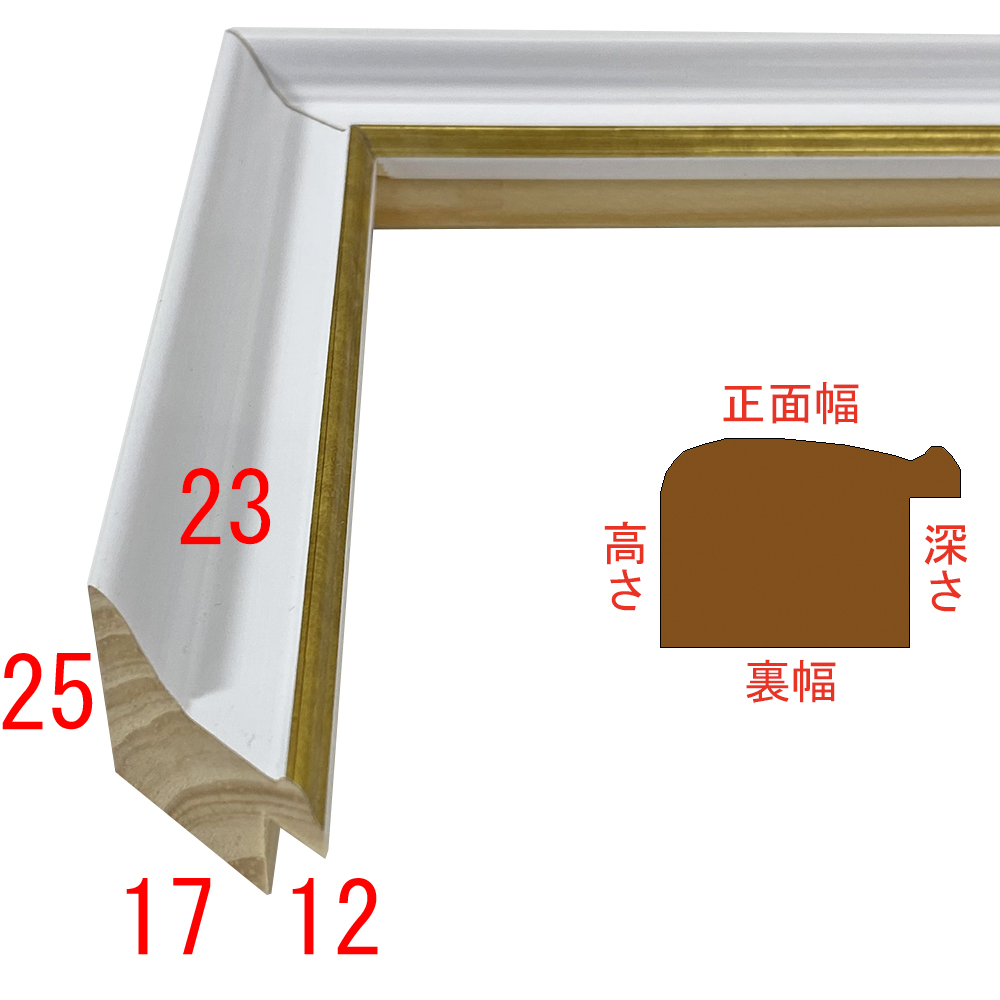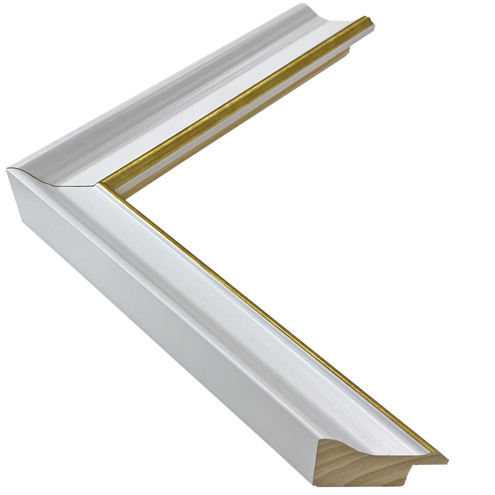 木製(パイン材)、オーダー製作専用。クラシックな形状のスペイン製フレーム。艶消しのホワイト塗装を丹念に施しました。フレーム内側の金の面先が上品に輝きます。優雅さと落ち着きを兼ね備えたデザインです。