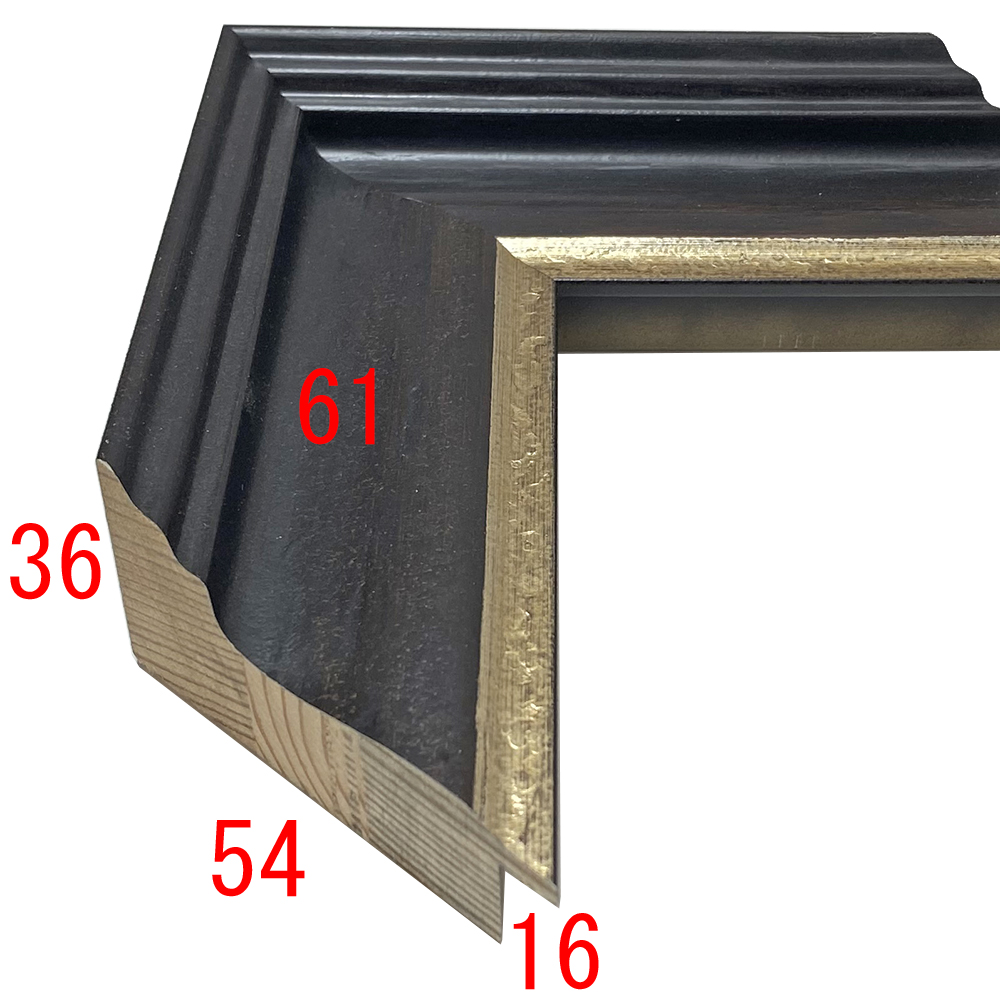 木製(パイン材)、オーダー製作専用フレーム。表面処理が特徴的なイタリア製のフレームです。黒と金の対比が視線を集中させます。
