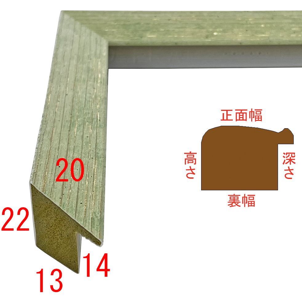 オーダー製作専用のフレーム。ラフな筋模様が入った樹脂製フレームです。木材に比べ、安定した色味・質感を誇ります。自然な緑色が明るくナチュラルに仕上げます。