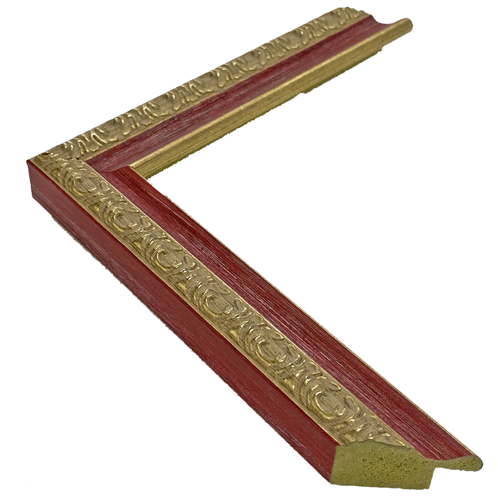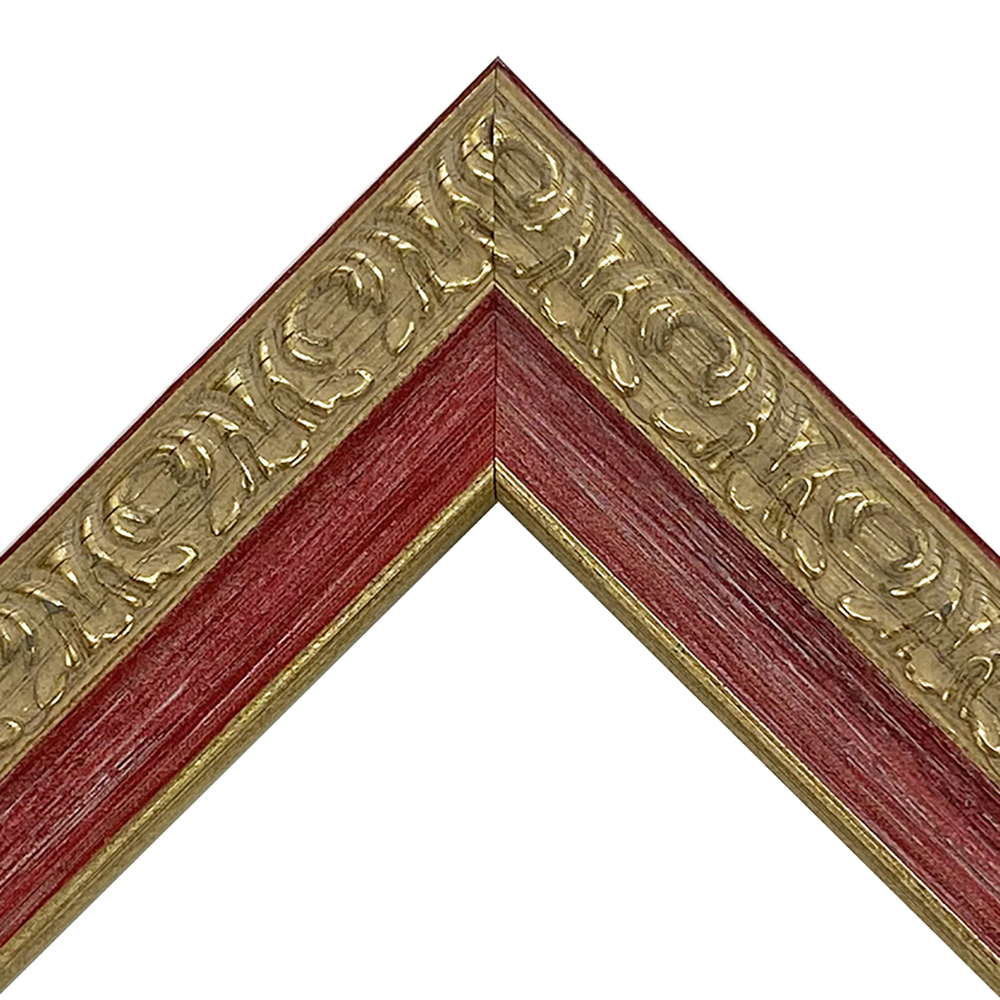 オーダー製作専用のフレーム。ツートンカラーの樹脂製額縁です。木材に比べ、安定した色味・質感を誇ります。赤と金の組み合わせで豪華絢爛に仕上がります。