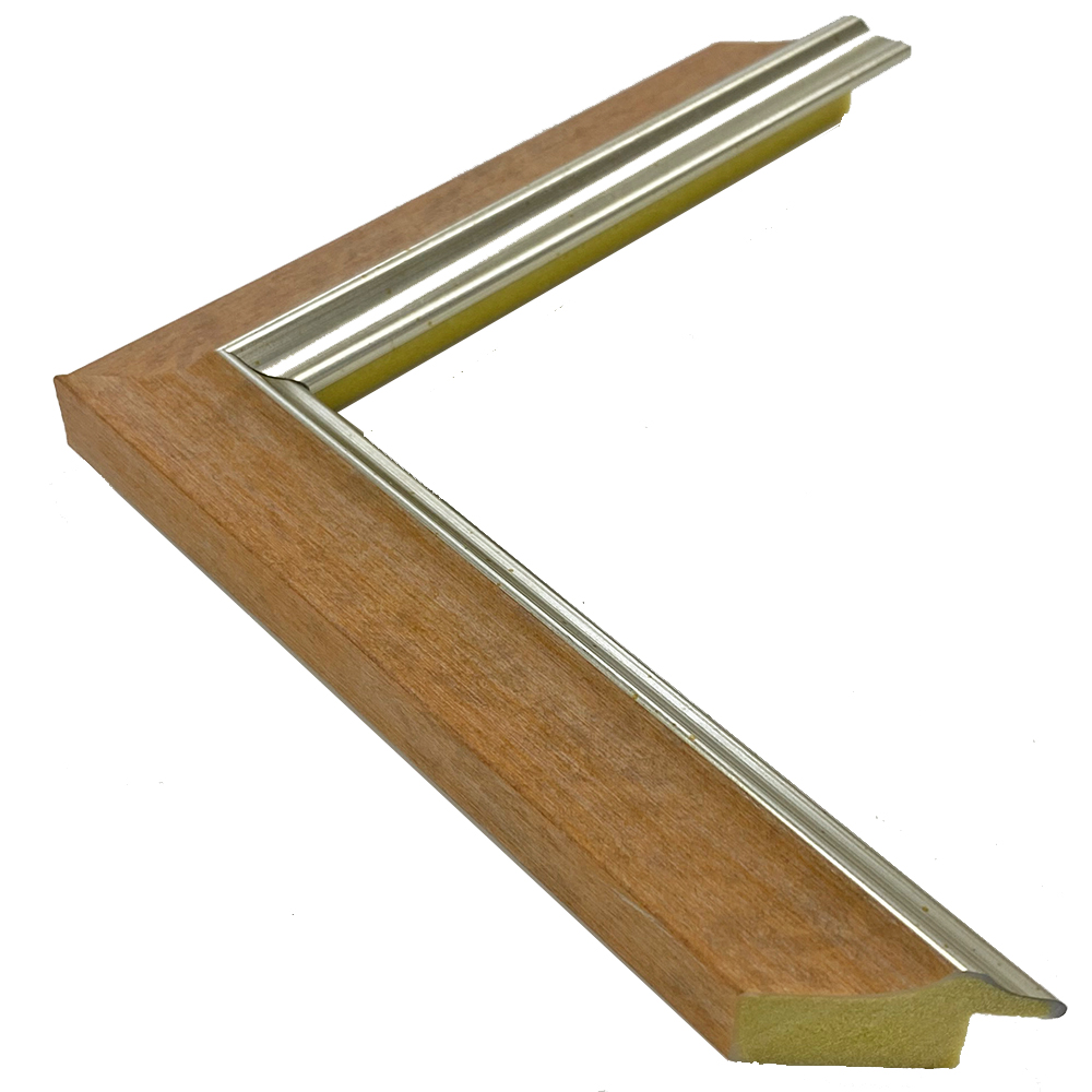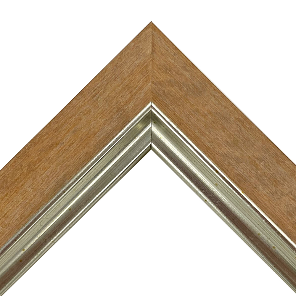 オーダー製作専用の樹脂製フレーム。木材に比べ、安定した色味・質感を誇ります。元気のでる暖色系、木目調の額縁です。内側のシルバーラインがシャープに魅せます。
