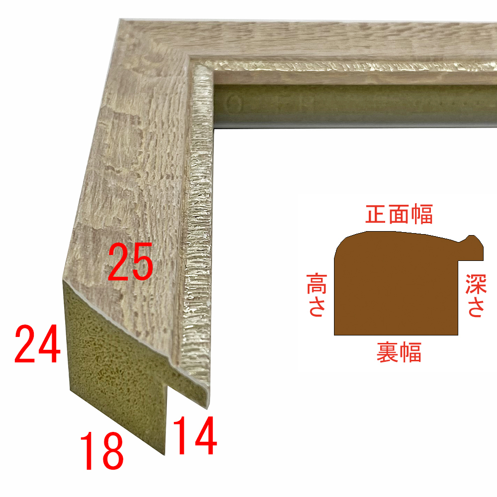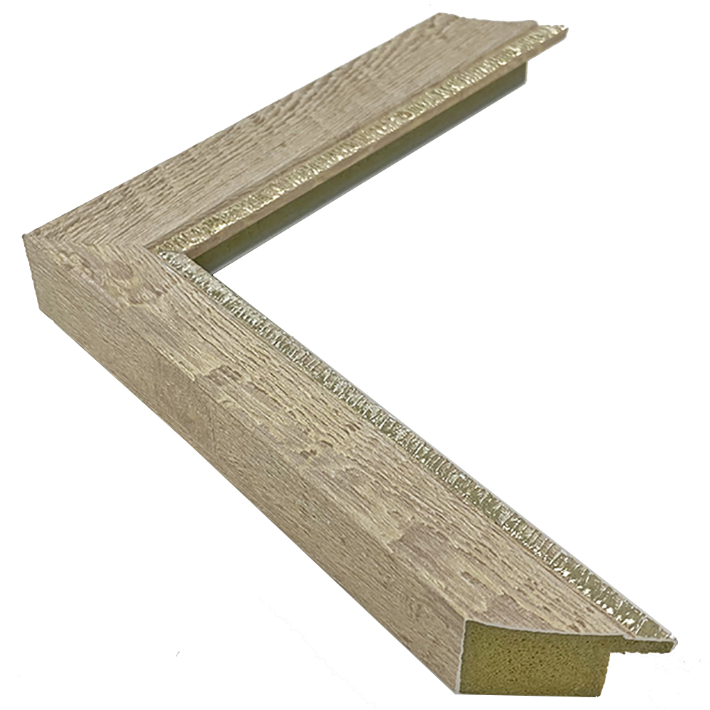 オーダー製作専用の樹脂製フレーム。木材に比べ、安定した色味・質感を誇ります。ラフな木目の質感を再現しました。時代を感じさせる額装に仕上がります。