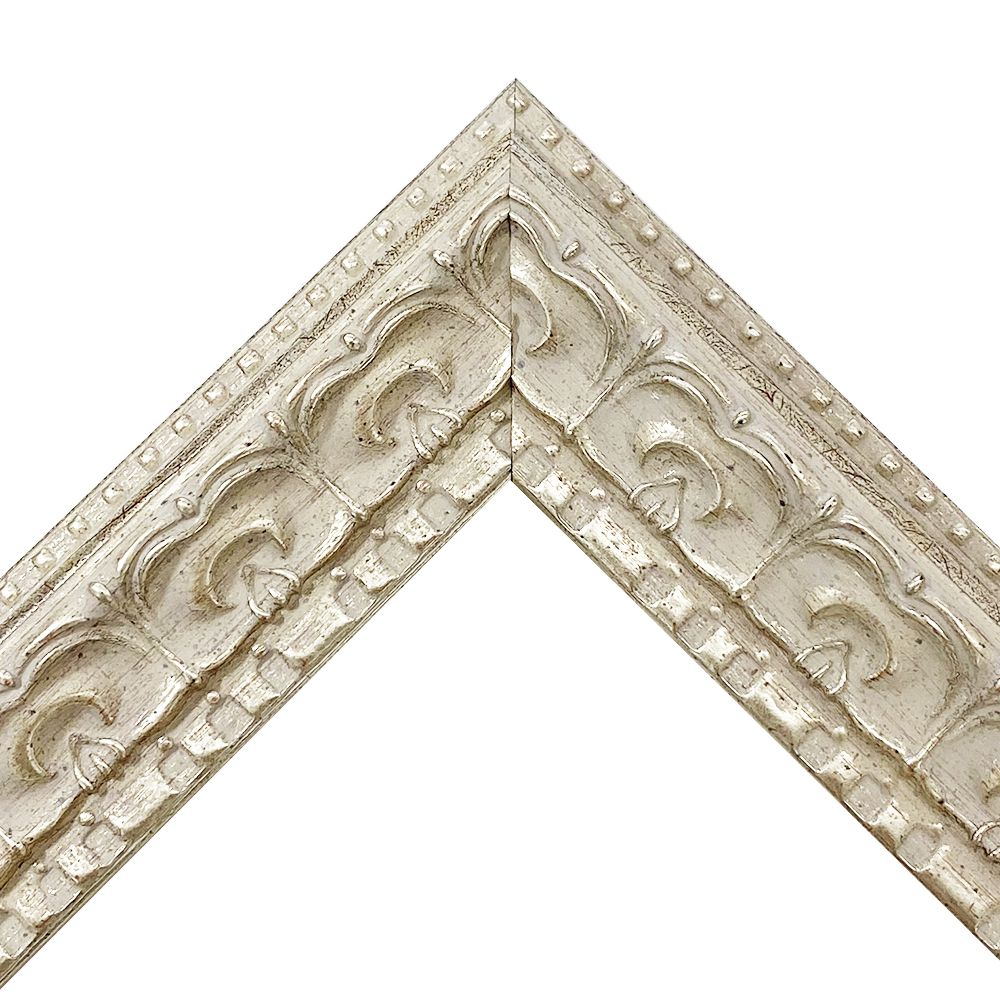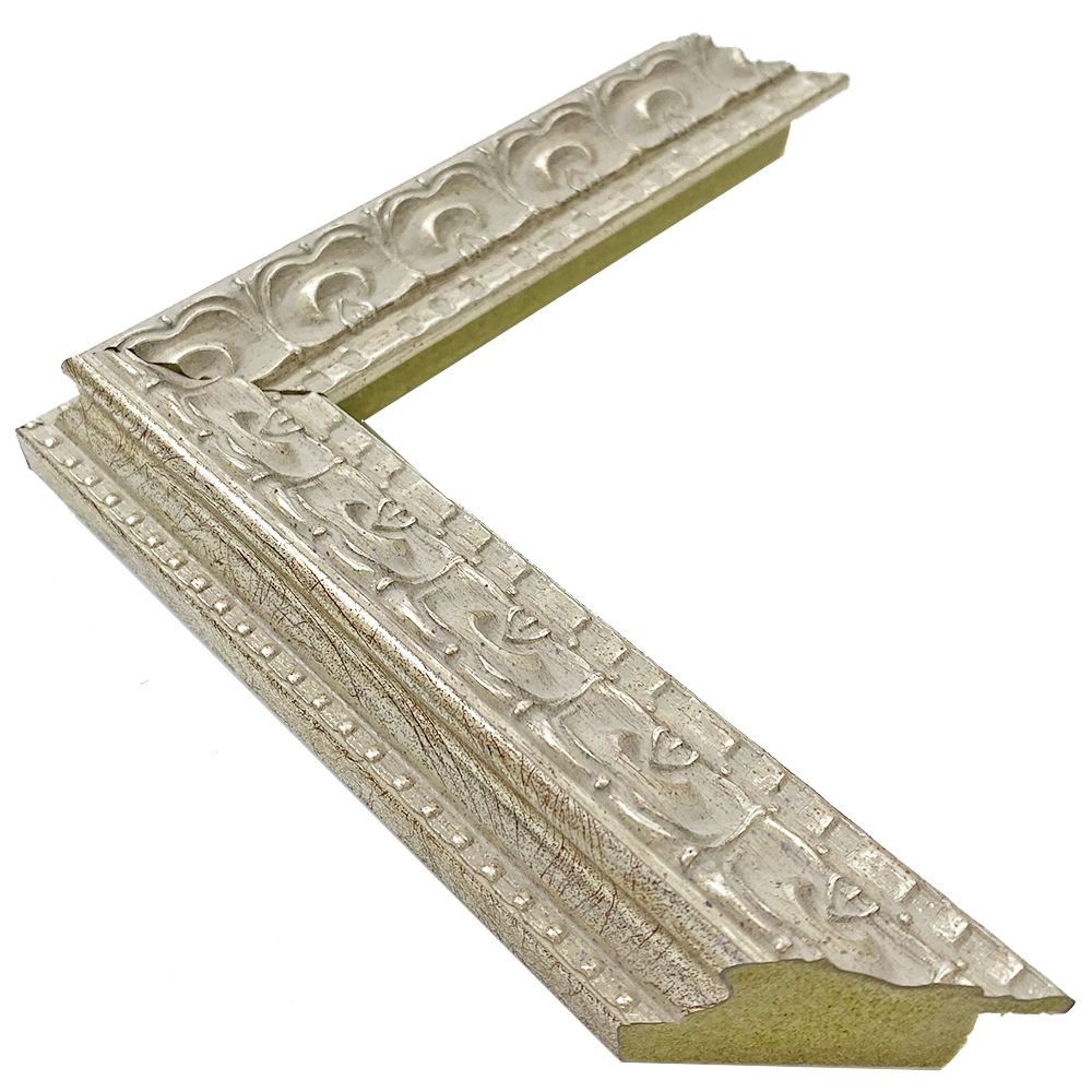 オーダー製作専用の樹脂製フレーム。オリエンタルな雰囲気漂う銀色の額縁。個性的な大柄の彫り模様が目を引きます。木材に比べ、安定した色味・質感を誇ります。