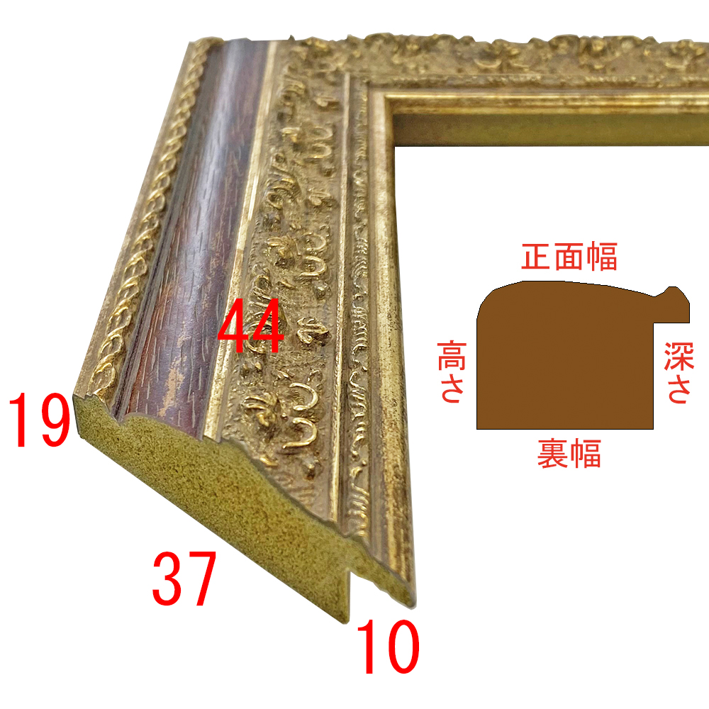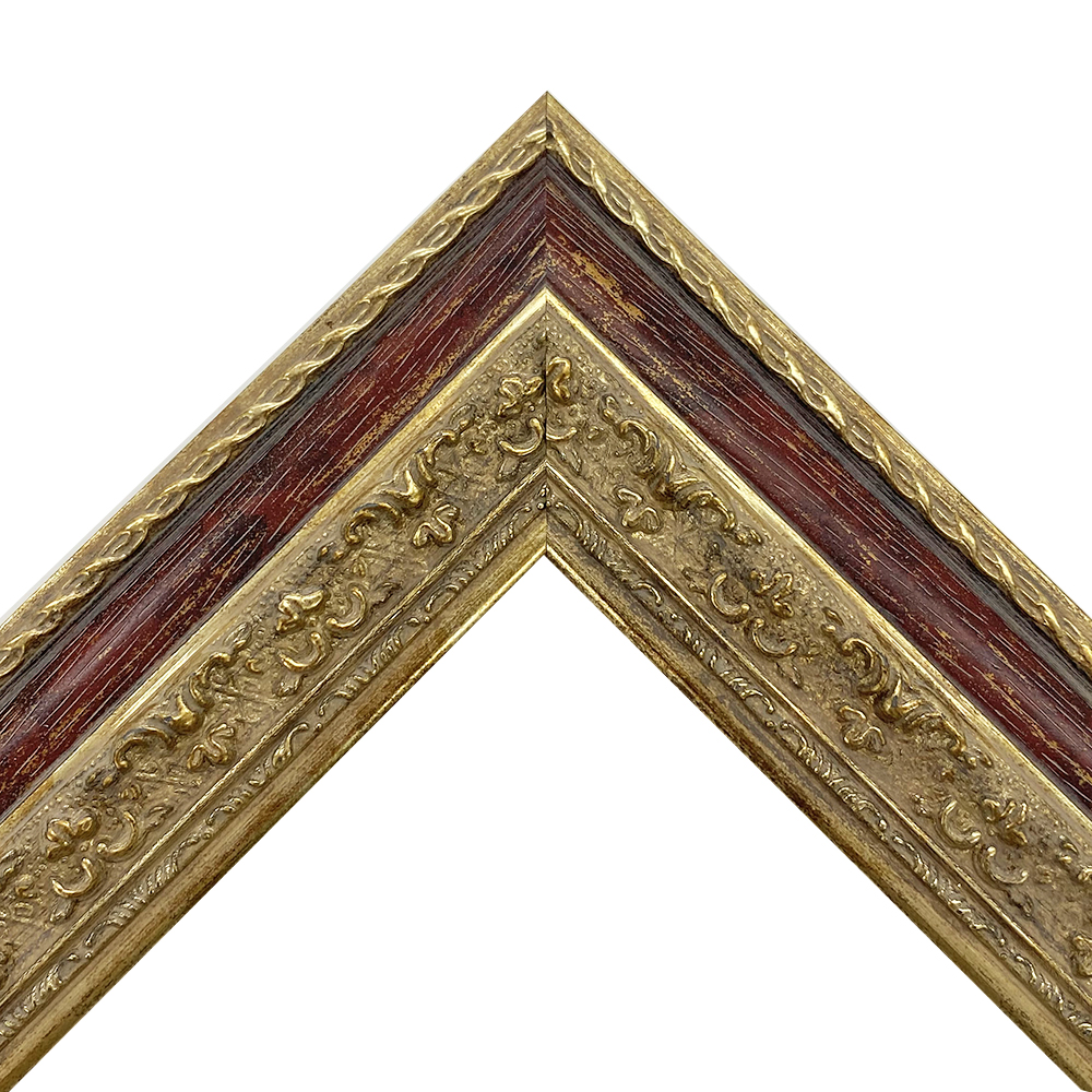 オーダー製作専用の樹脂製フレーム。アンティークな赤と金の組み合わせが目を引く。古代文明を思わせる特徴的な模様も特徴です。木材に比べ、安定した色味・質感を誇ります。