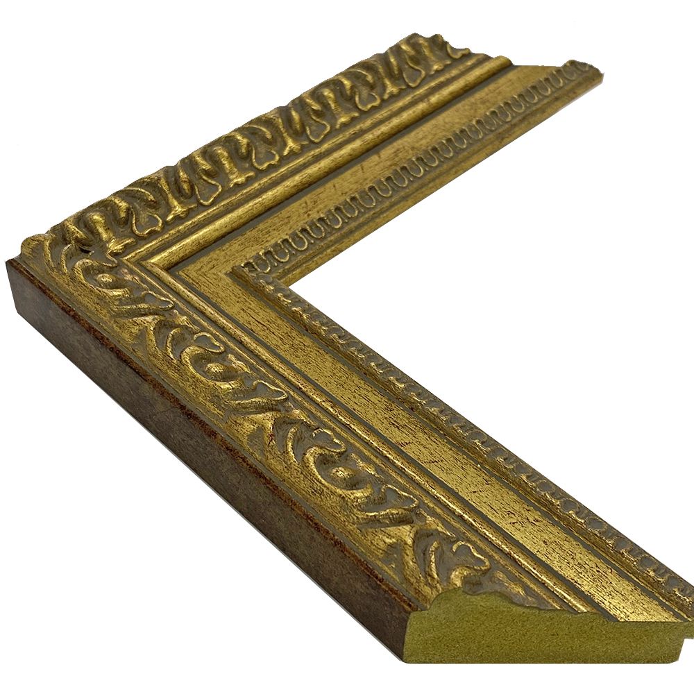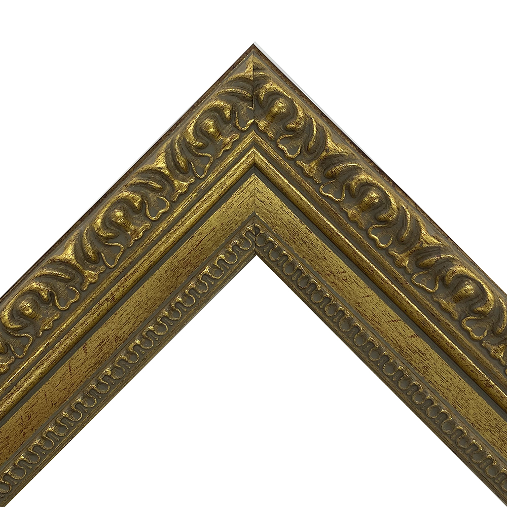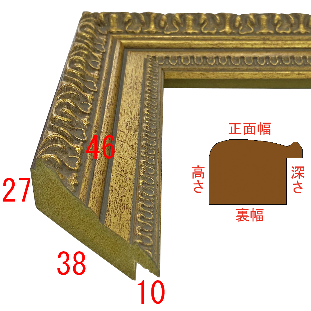 オーダー製作専用のフレーム。太さ充分の豪華な樹脂製の額縁です。落ち着きのある暗めのゴールド色。インパクト充分の重厚さが期待できます。木材に比べ、安定した色味・質感を誇ります。