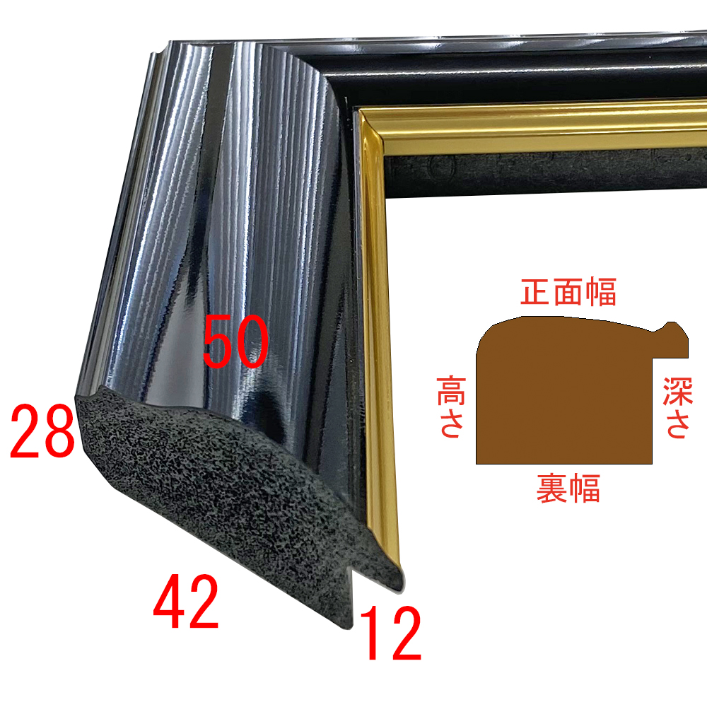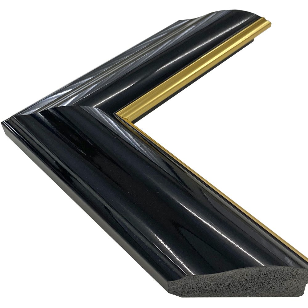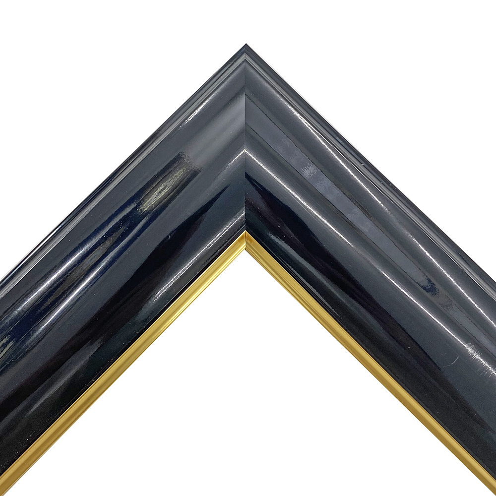 オーダー製作専用の樹脂製フレーム。木材に比べ、安定した色味・質感を誇ります。艶やかなブラックにゴールドのアクセントが輝く。時代を超えて親しまれるデザインの額縁です。