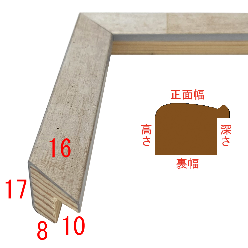 木製(パイン材)、チェコ製のオーダーフレーム。微かに施されたラフな風合いが美しい。繊細な色合いとの調和が楽しめます。