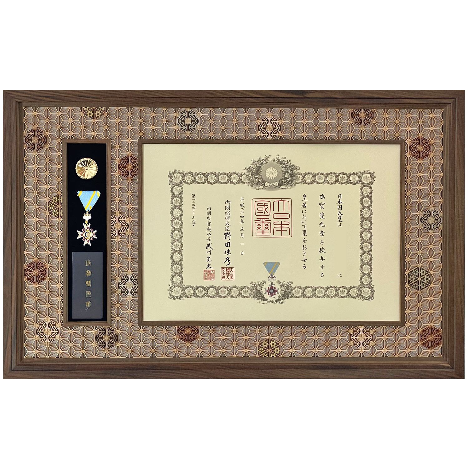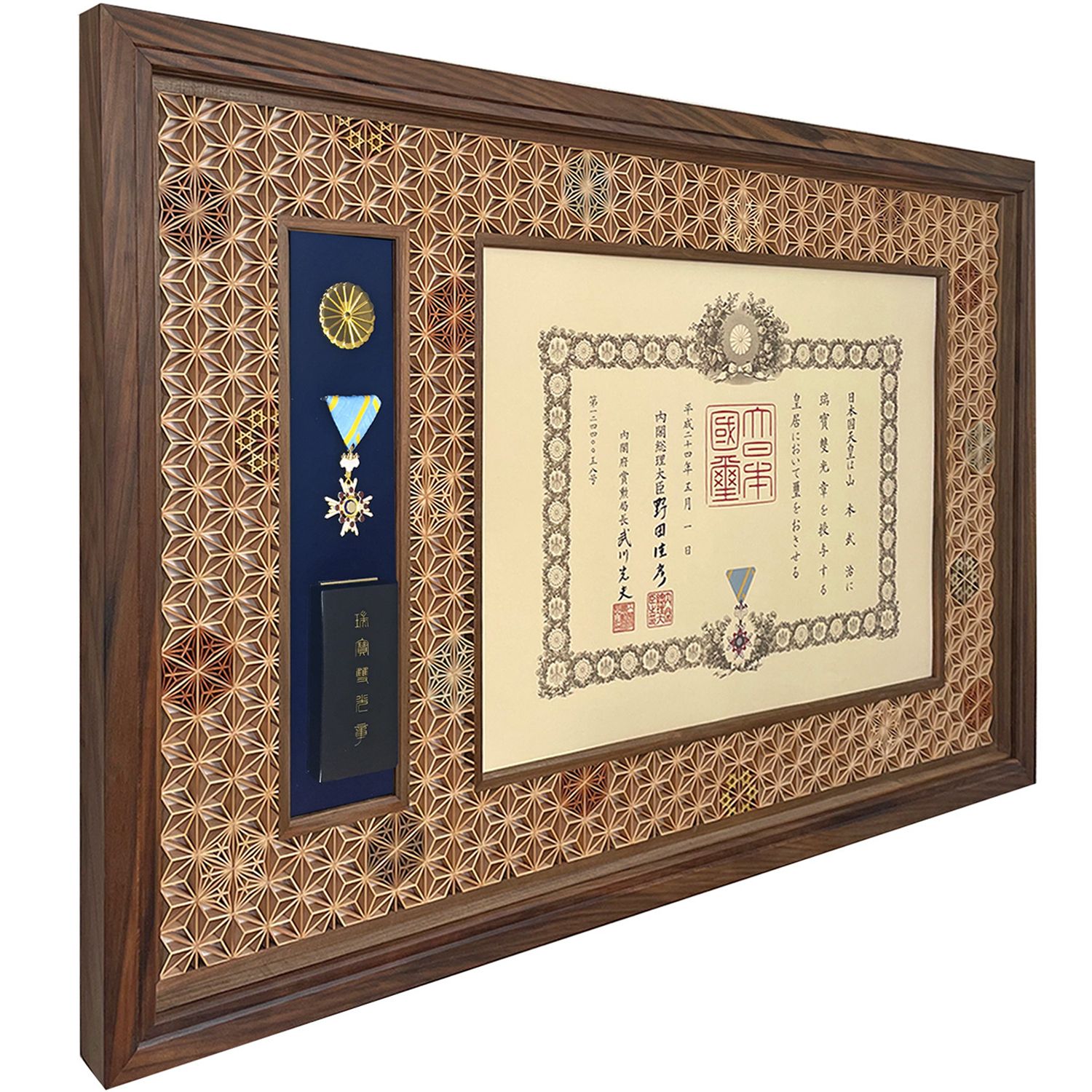 希少材の神代木と【八重麻の葉】組子柄を融合させたハイクラス叙勲額