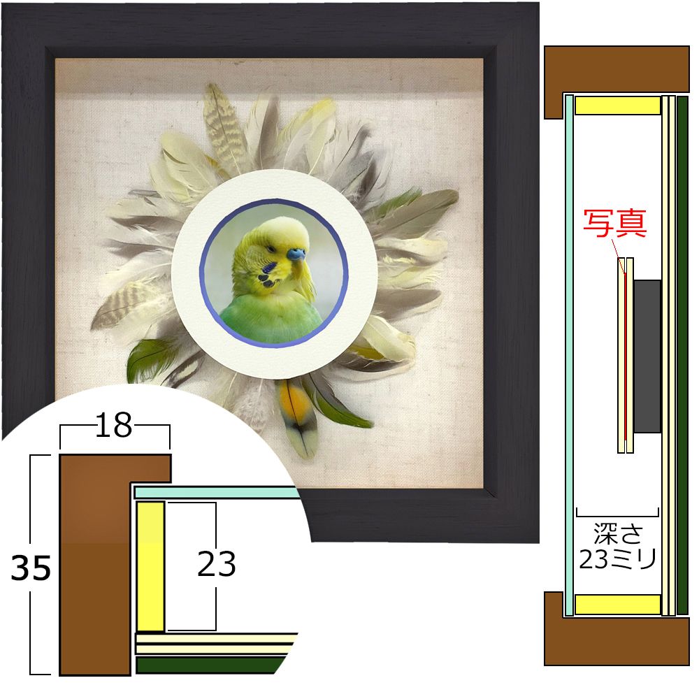 小鳥の羽根を飾れる羽根専用の額縁です。