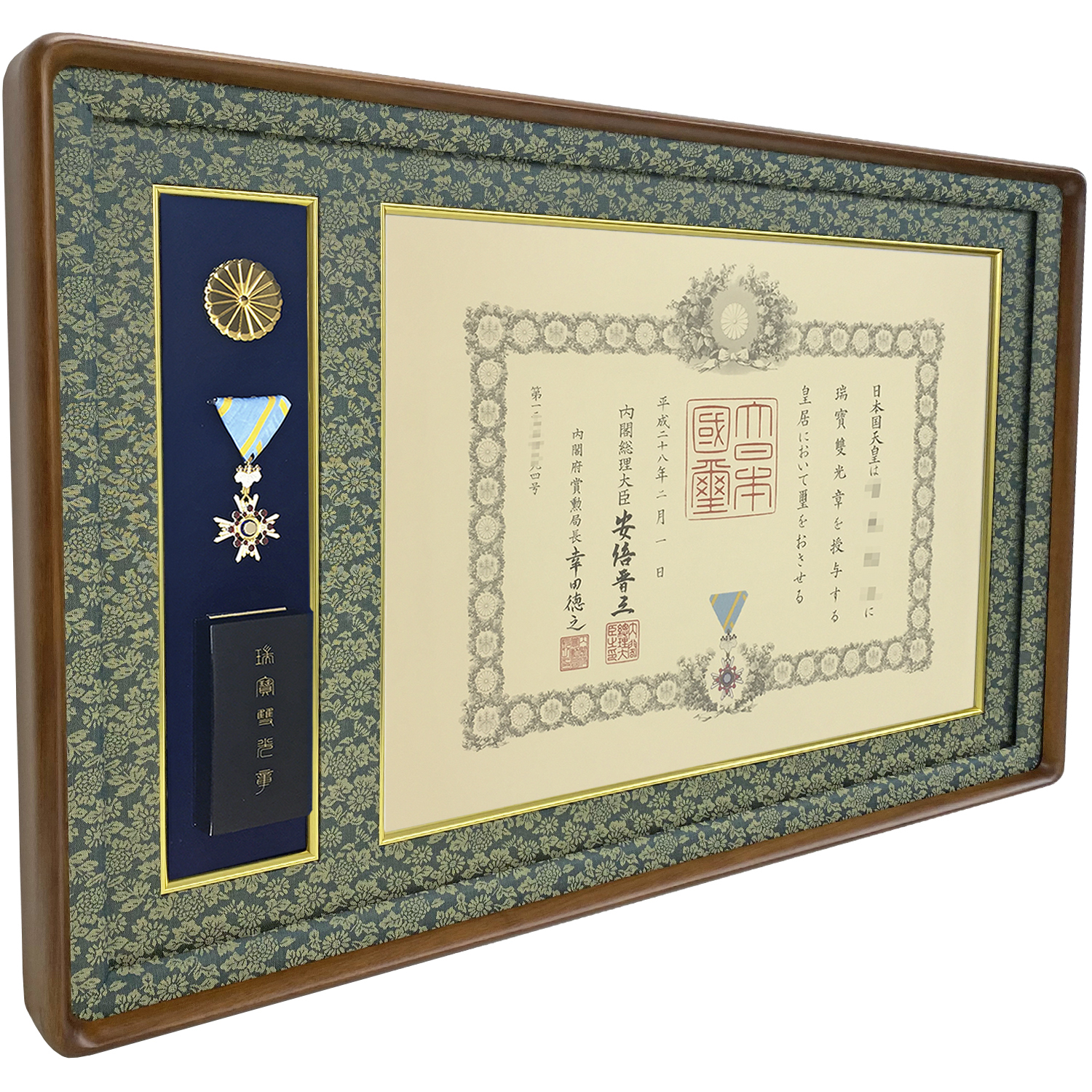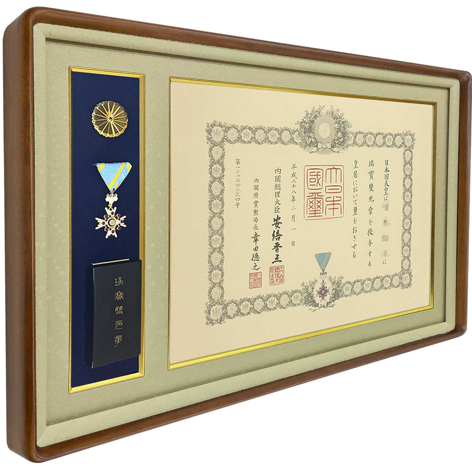 落ち着きのある色合い、自然な木目が美しいケースも飾れる叙勲額