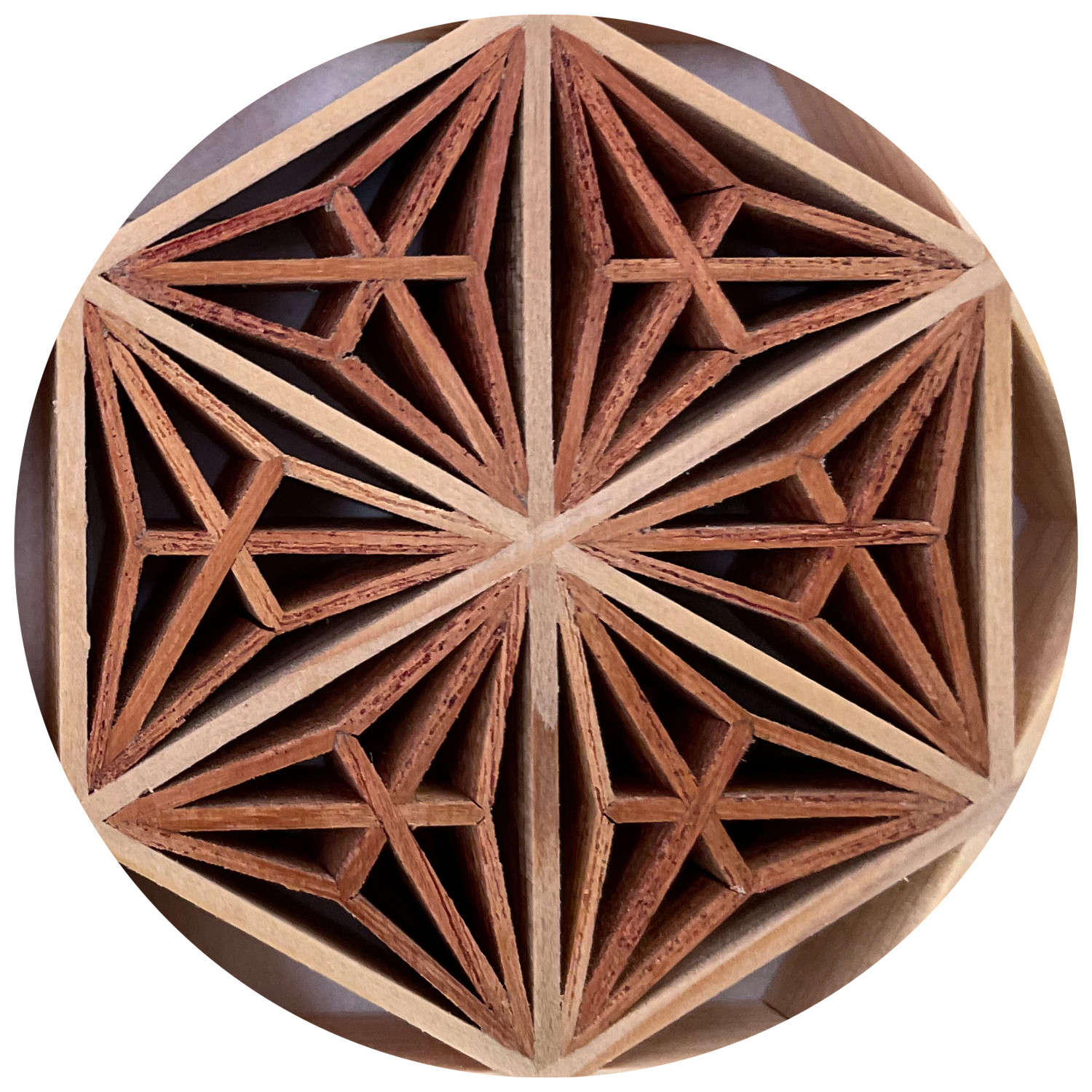 神代木と【八重麻の葉】の組子柄を融合、中綬章専用叙勲額