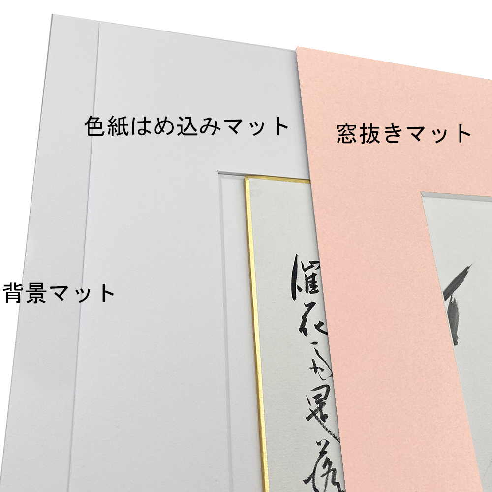 色紙をはめ込んで固定し、裏表の両面を額装マットで挟みます。
