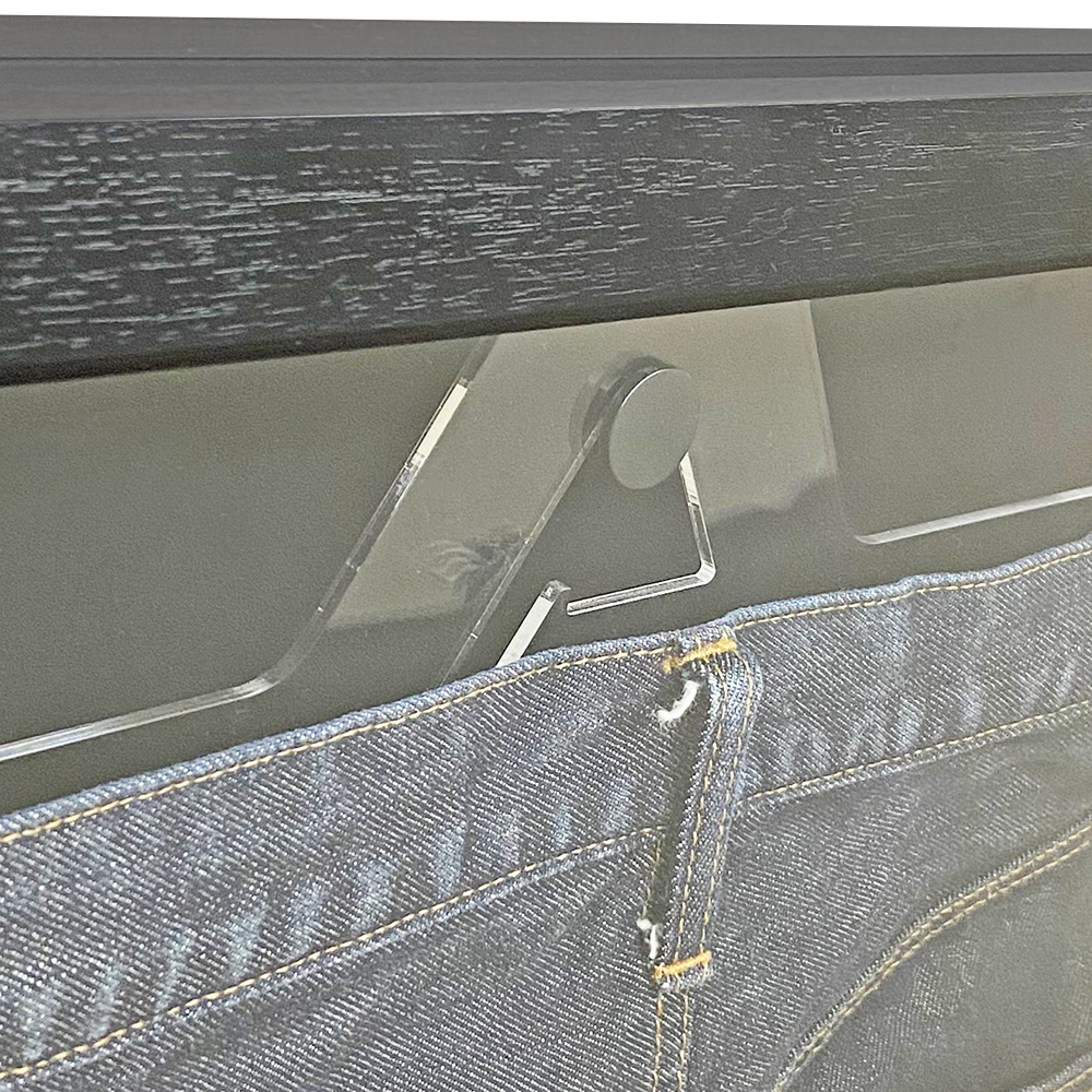 ハンガーに吊るして飾れる入れ替え可能な、ジーンズ専用額です
