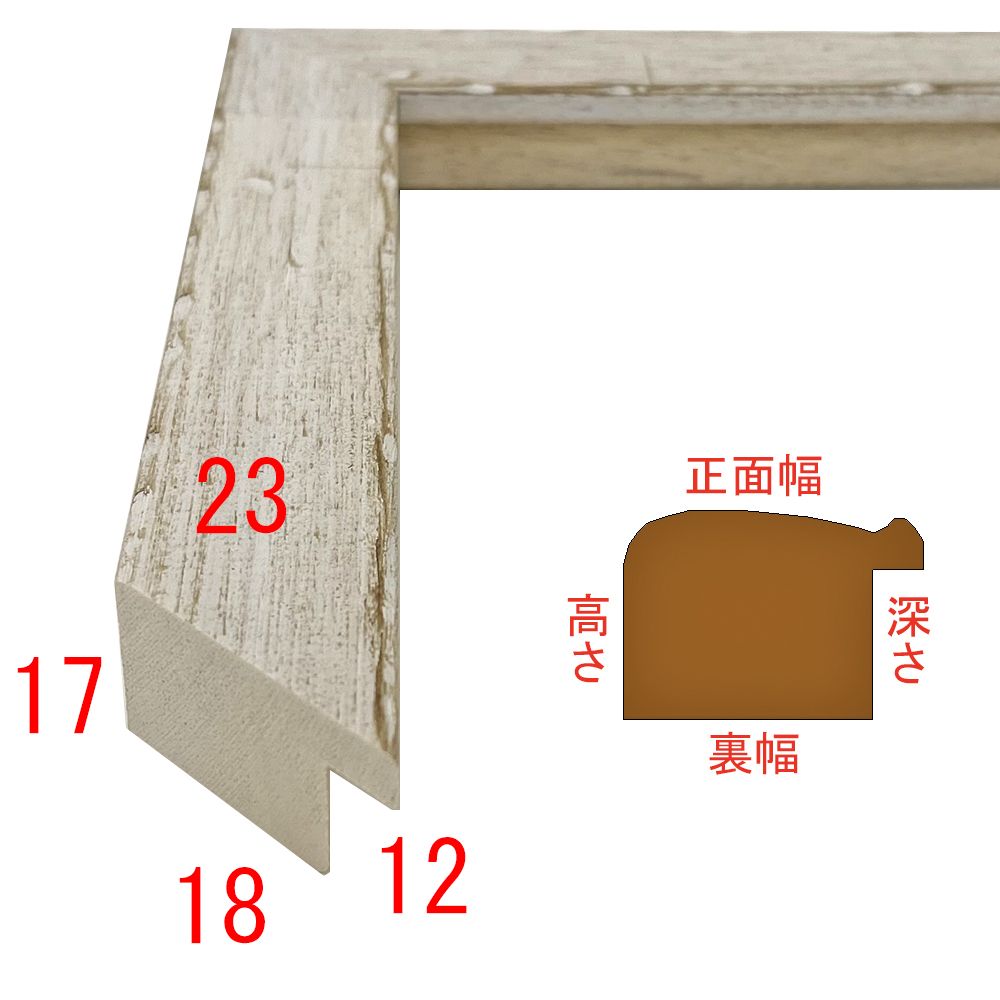 木製、オーダー製作専用フレーム。虫食いや古びた色合いを再現しました。汚しが入ったホワイトのアンティーク調。